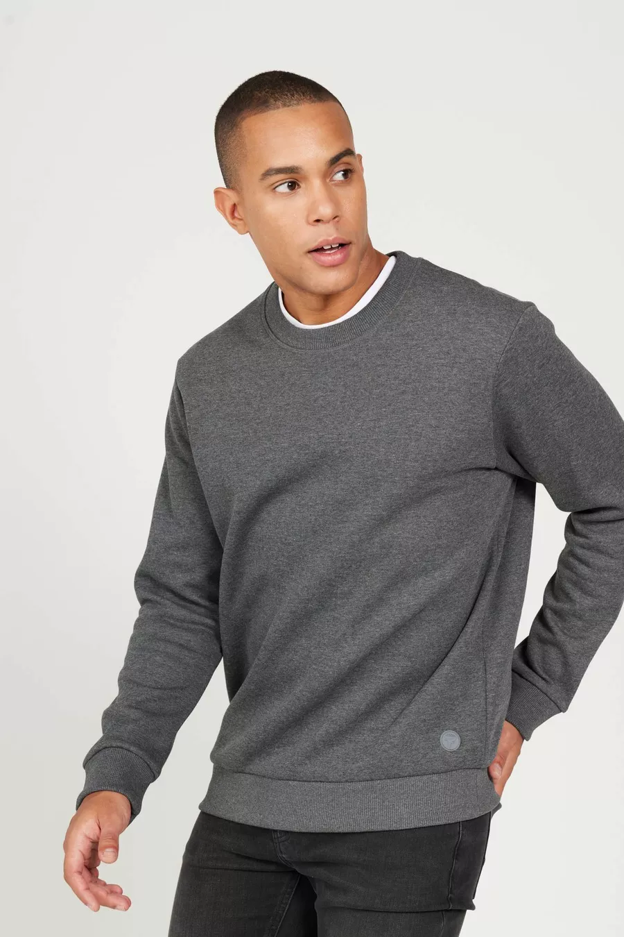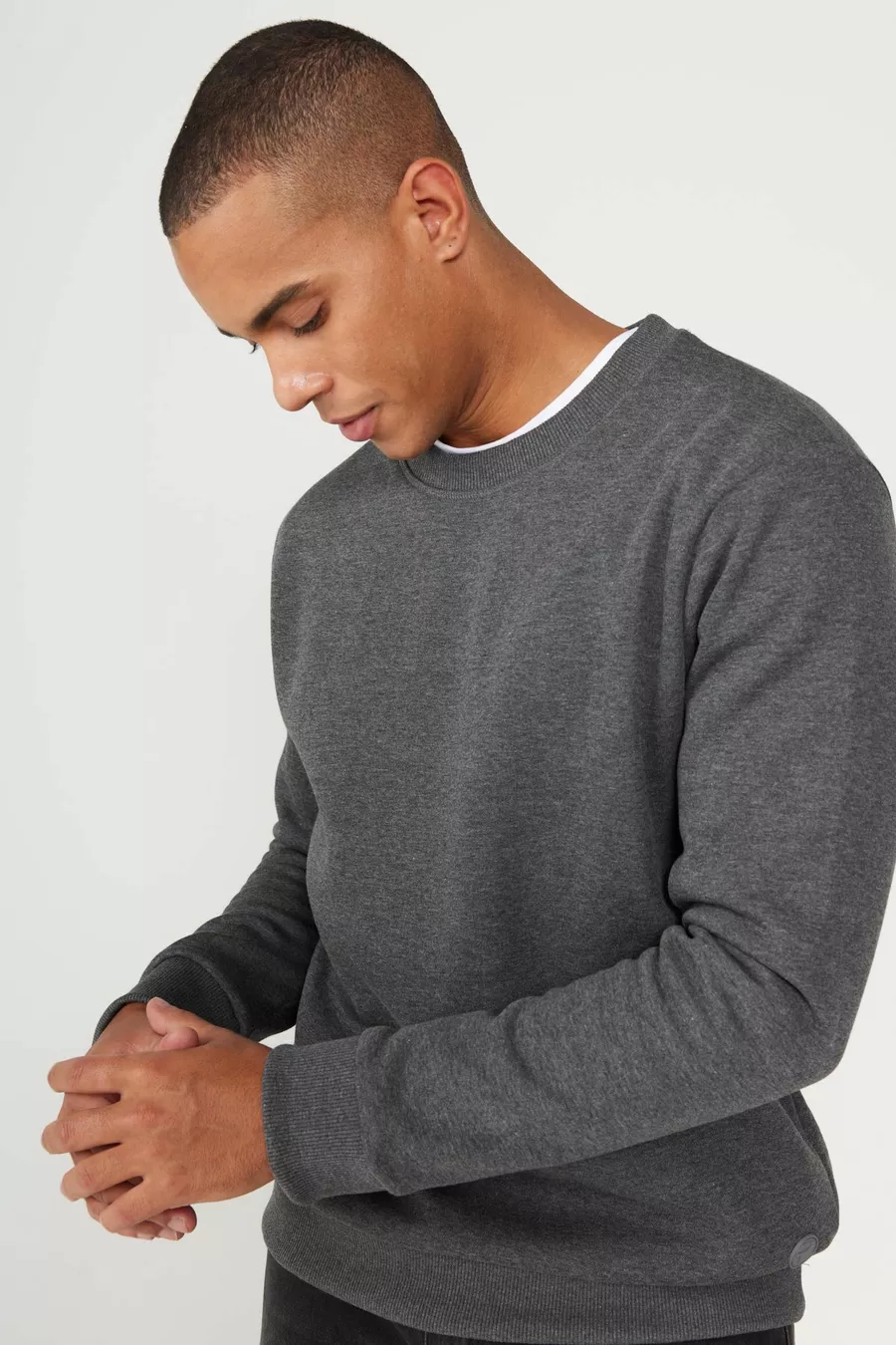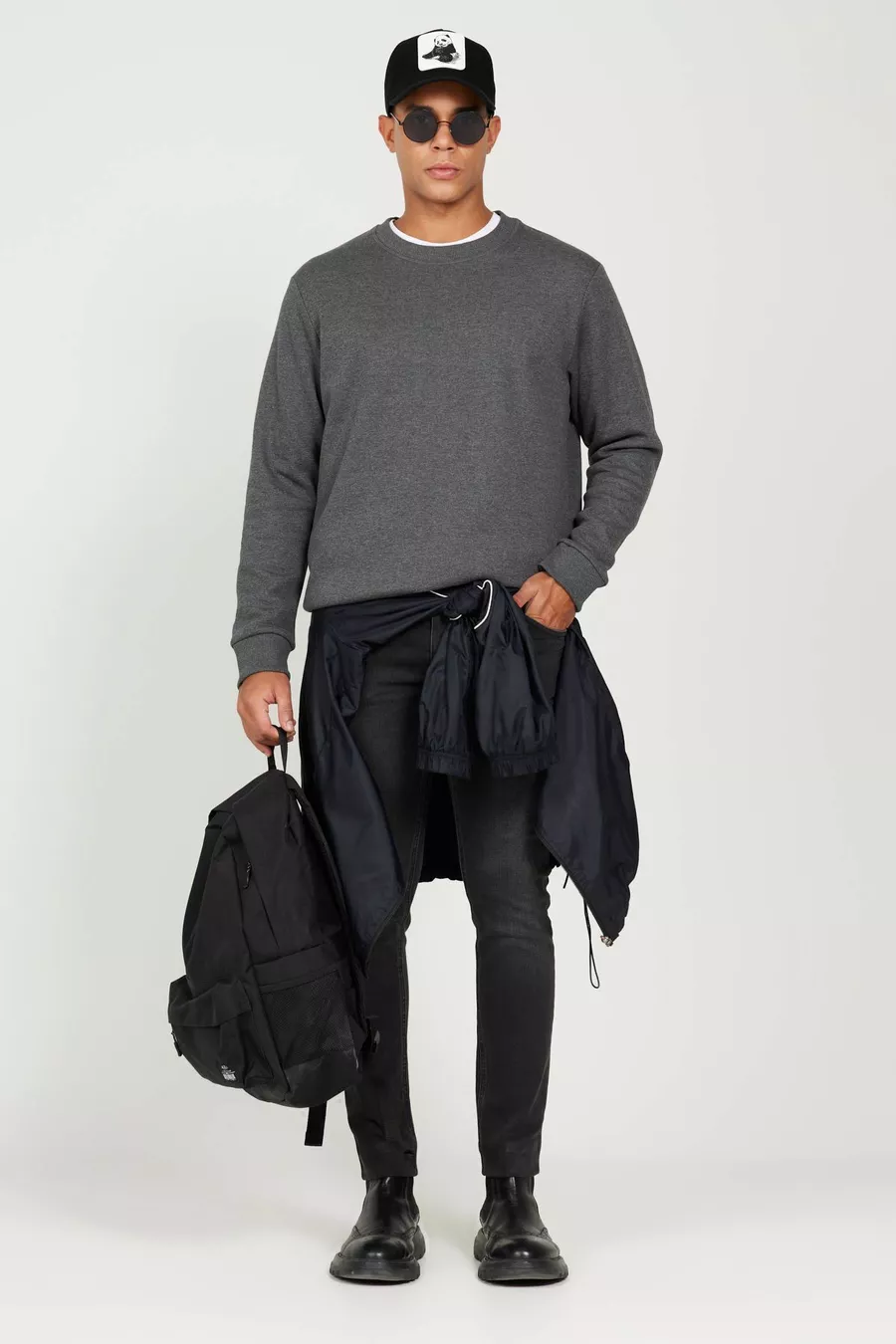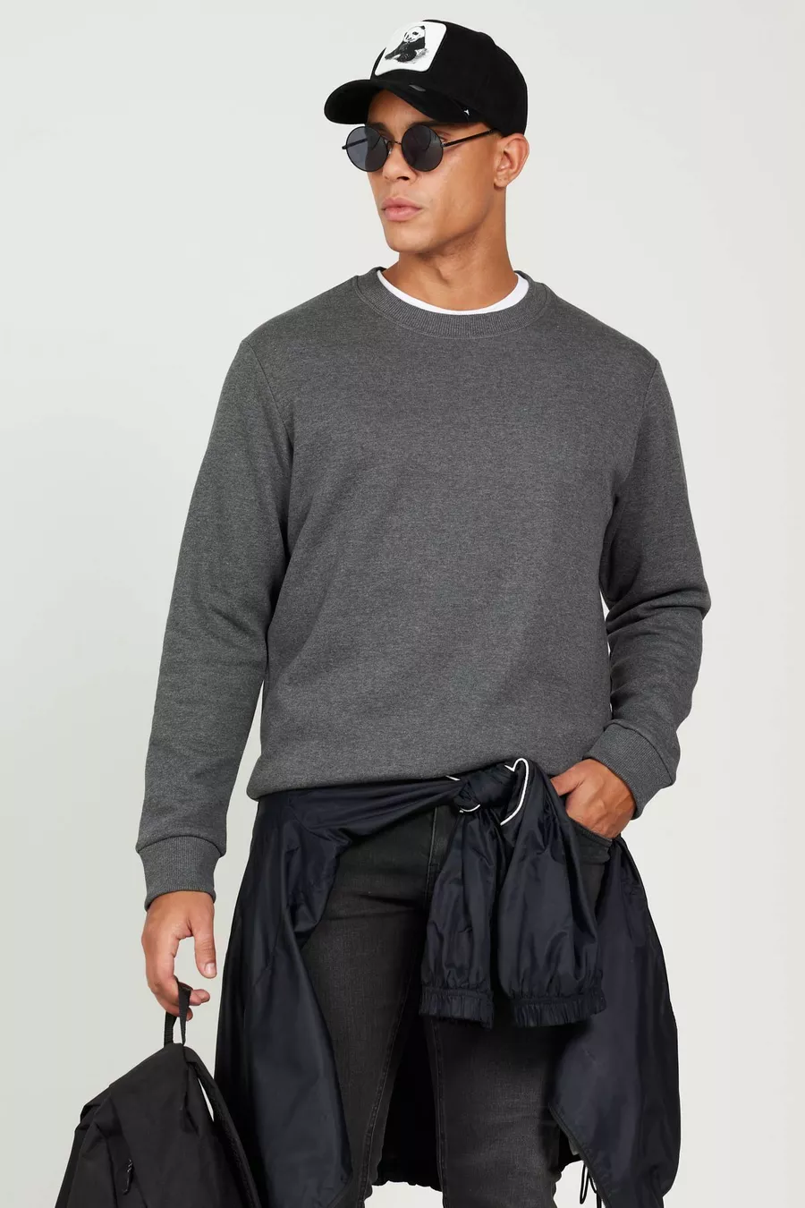 Felpa da uomo antracite melange, vestibilità standard, taglio normale, con interno in pile, girocollo a tre fili