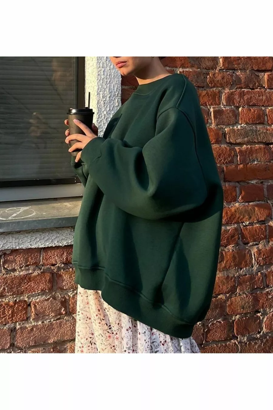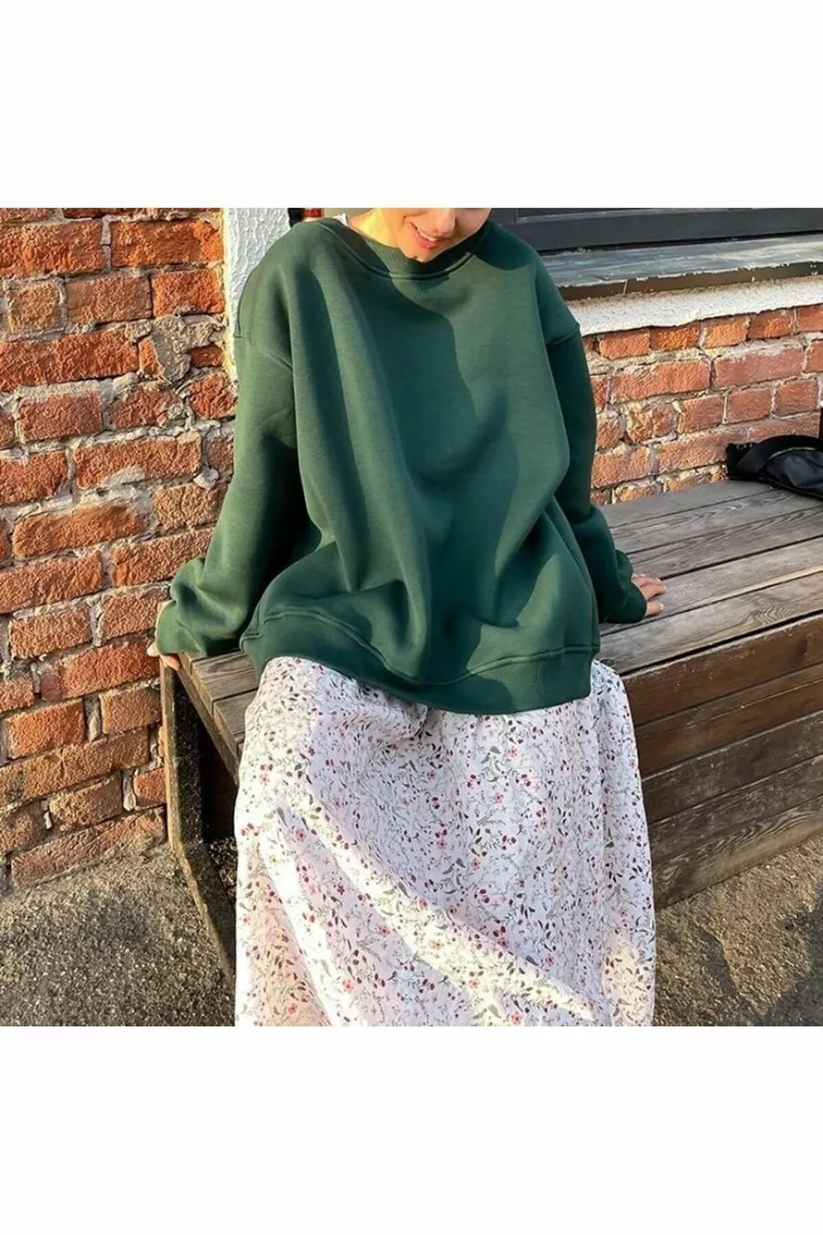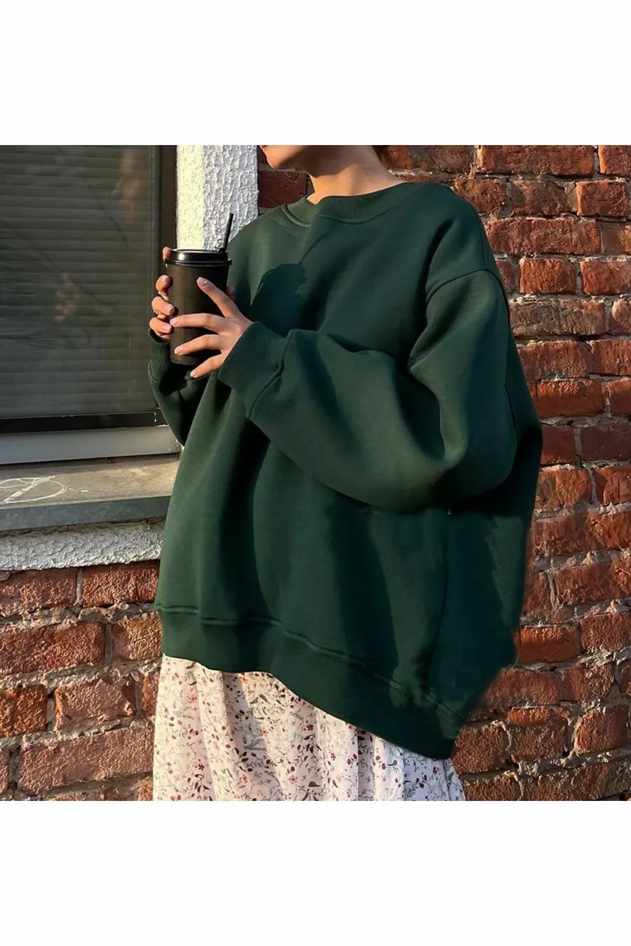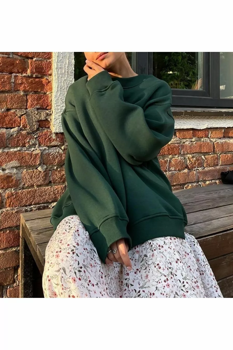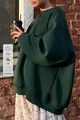 Felpa da donna invernale con girocollo a bicicletta, morbida e ampia con interno spazzolato, VERDE SCURO