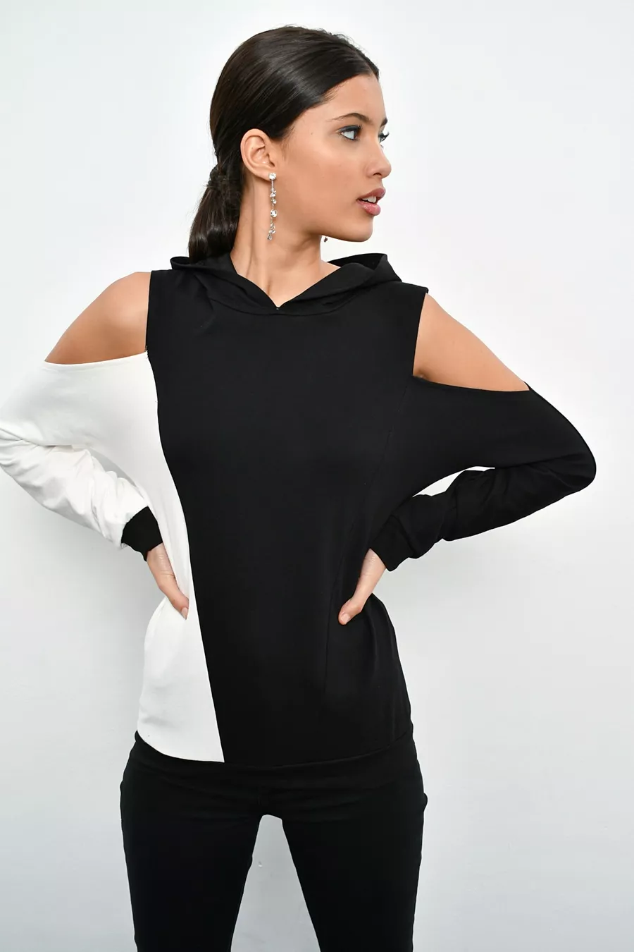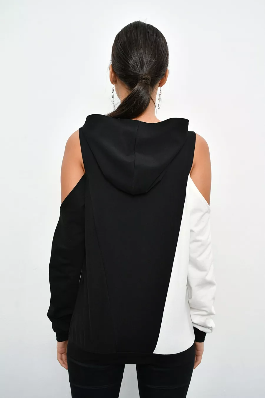 Felpa Donna Nera a Blocchi con Spalle Scoperte