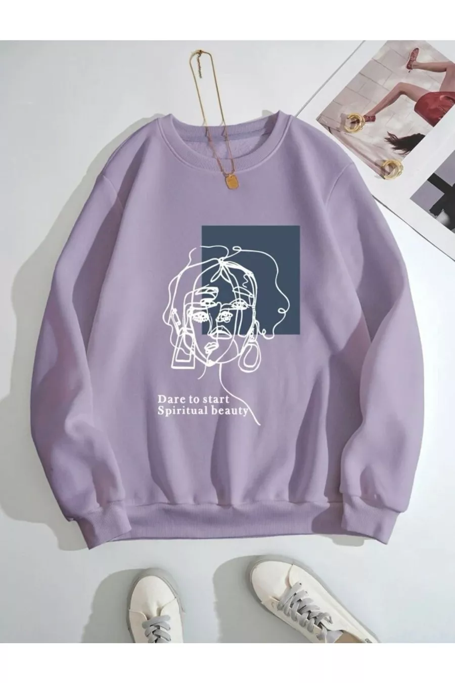 Felpa Girocollo Unisex Lilla Beauty Stampata