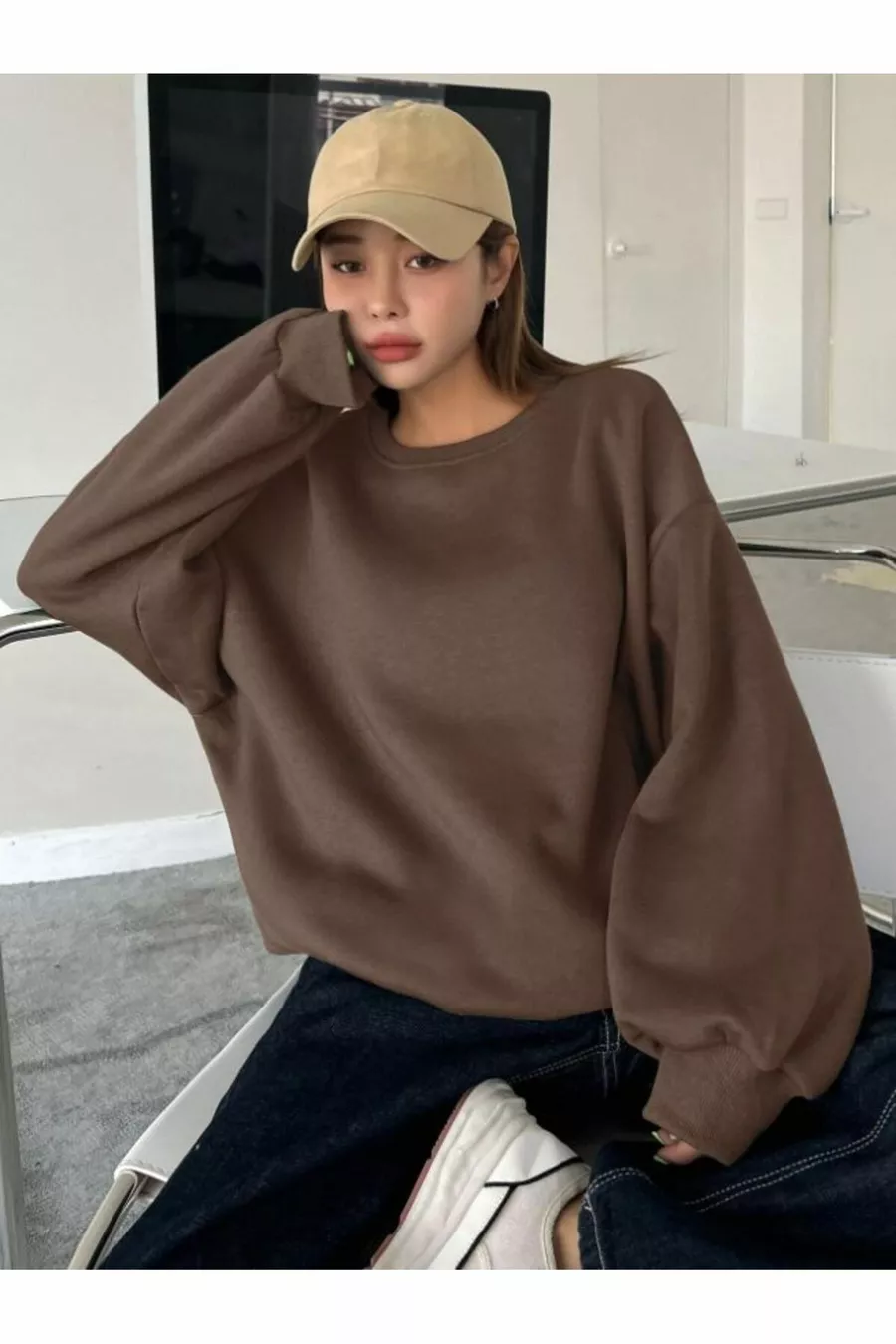 Felpa marrone spessa - Collo a giro oversize rialzato