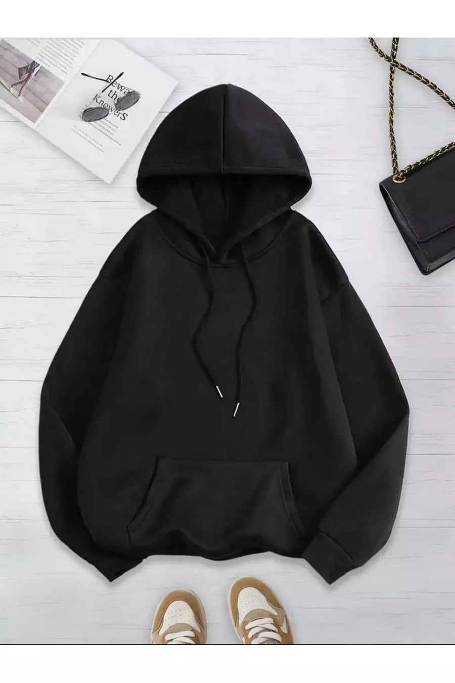 Felpa nera con cappuccio unisex colorata