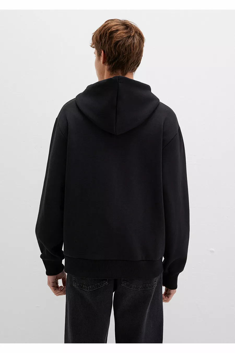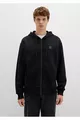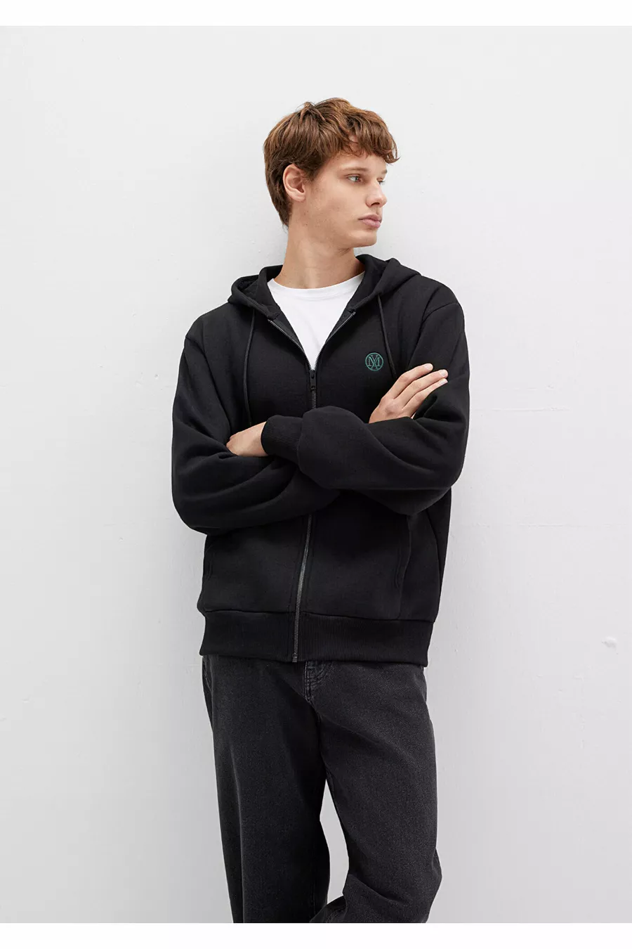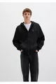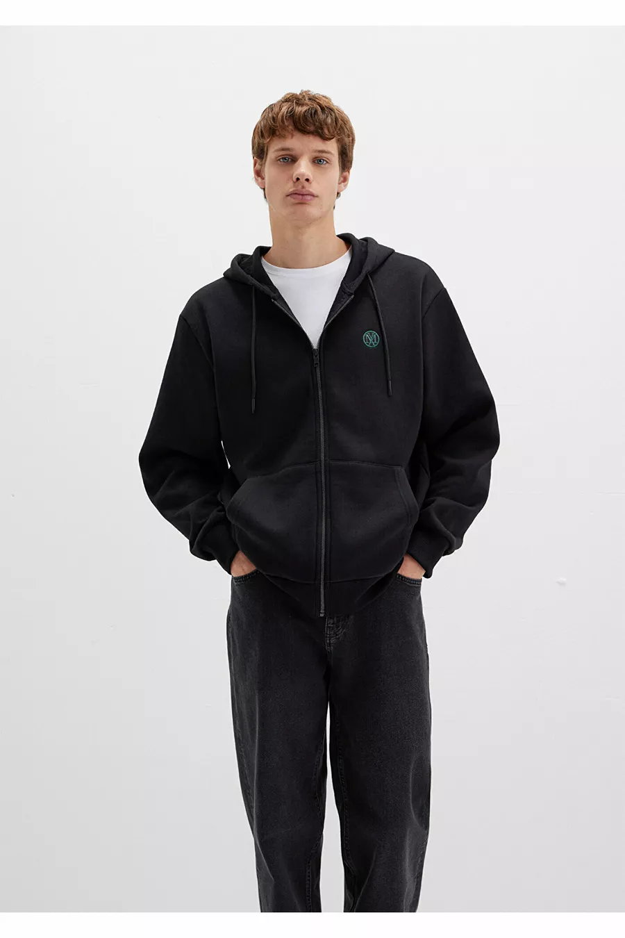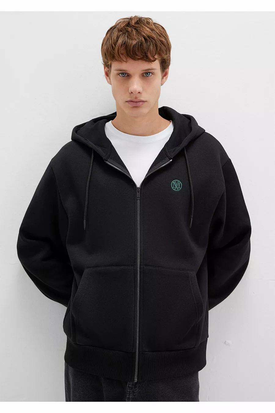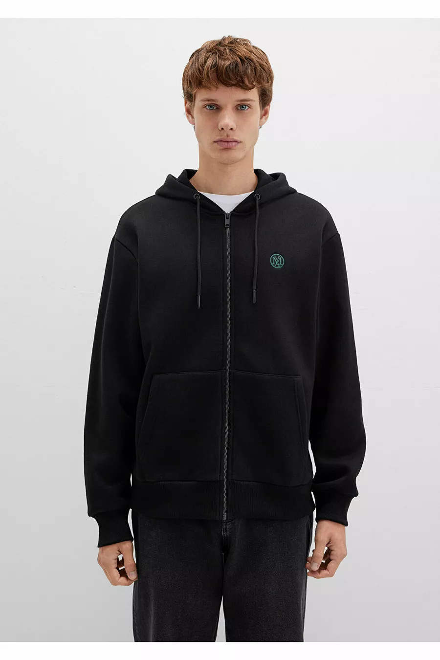 Felpa Nera con Cappuccio e Zip con Ricamo Logo Sigillo
