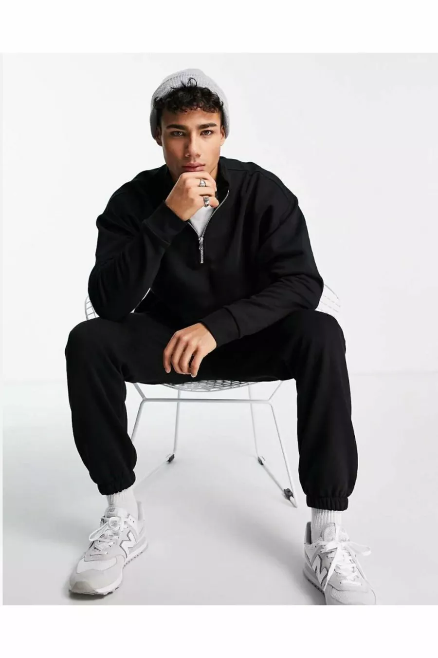 Felpa nera con colletto a mezza cerniera