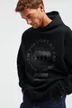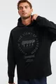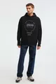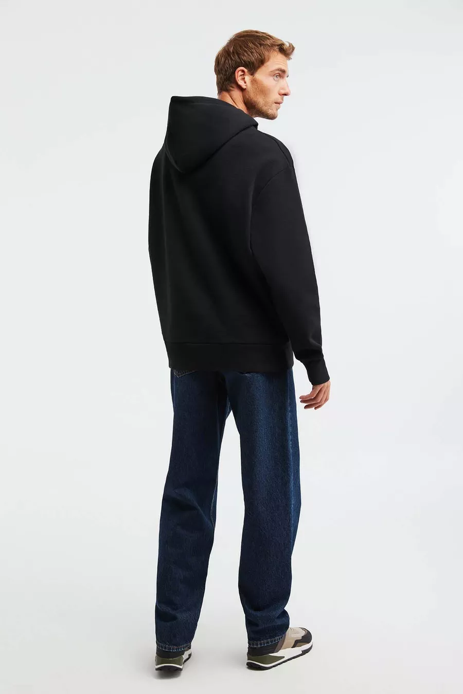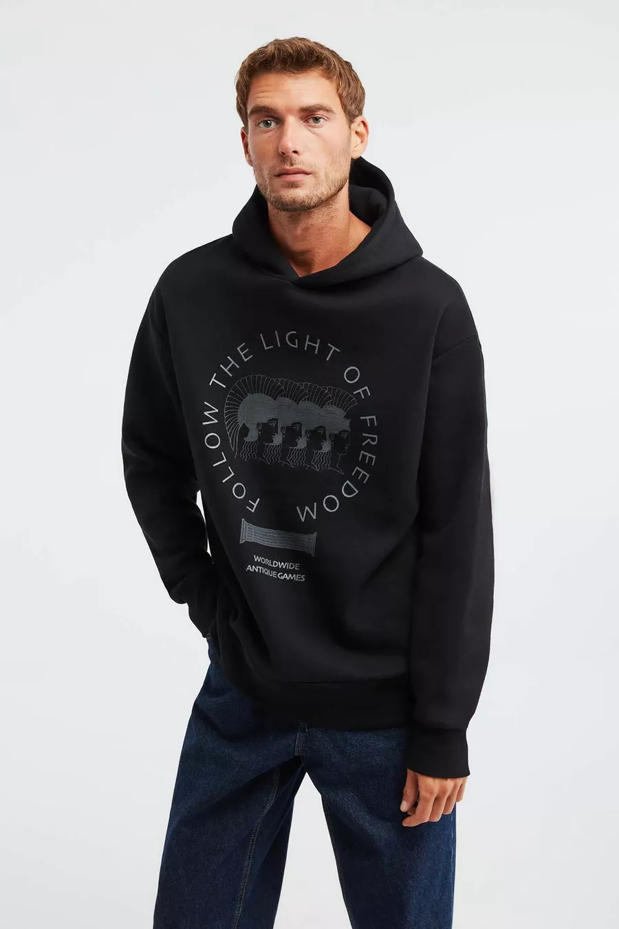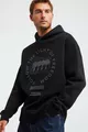 Felpa Nera Uomo Olympos % Cotone Organico, 3 Fili, Oversize, Con Cappuccio Stampato e Coulisse