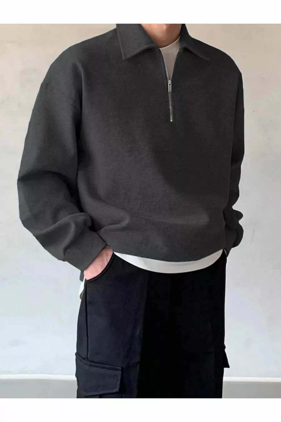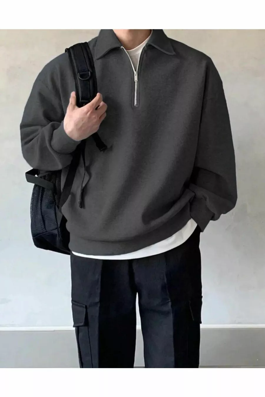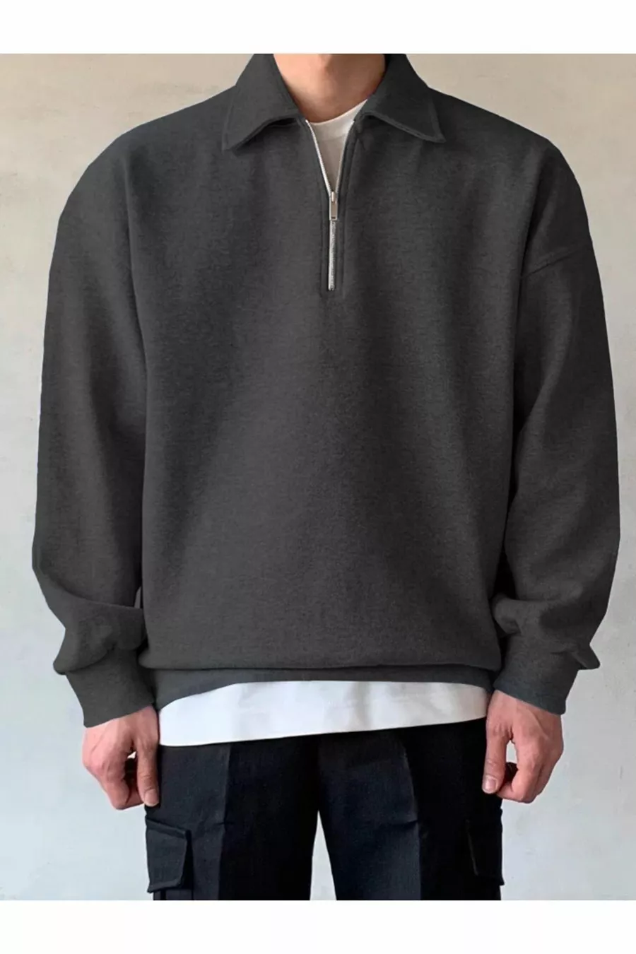 Felpa oversize da uomo con collo polo e mezza cerniera Felpa oversize