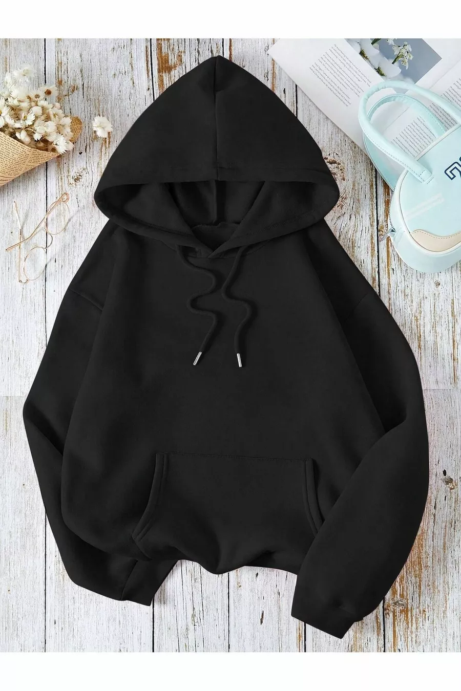 Condizioni della confezione: Senza confezione Tipo di manica: Manica lunga Motivo: Liscio Vestibilità: Oversize Tipo di collo: Con cappuccio Tipo di tessuto: Maglia Colore: Nero Materiale: Cotone Poliestere Chiusura: Con lacci Tasca: Tasca a marsupio Dettaglio prodotto: Con elastico Lunghezza manica: Lunga Collezione: Abbigliamento sportivo Contenuto della confezione: Singolo Occasione: Quotidiana Lunghezza: Standard Sagoma: Regular Tipo di tessitura: Due fili Tecnica di stampa/ricamo: Senza stampa Dettaglio sostenibilità: No Istruzioni per il lavaggio: Tipo 1 Paese di origine: TR Numero di pezzi: 1