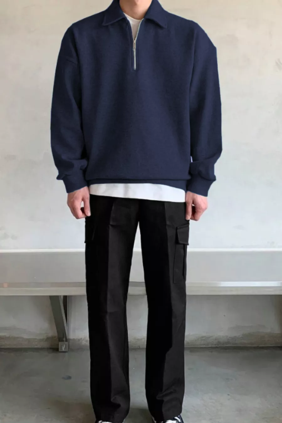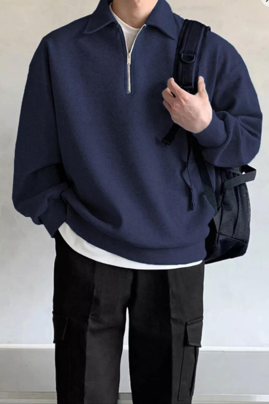 Felpa oversize da uomo con mezza cerniera e collo a camicia