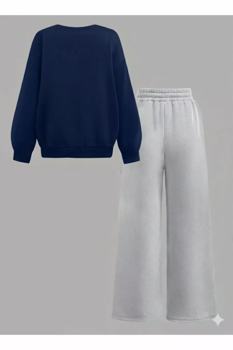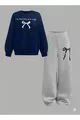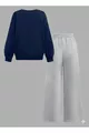 Felpa per Ragazza con Girocollo Blu Scuro Just a Girl - Set Tuta Grigio Taglio Largo