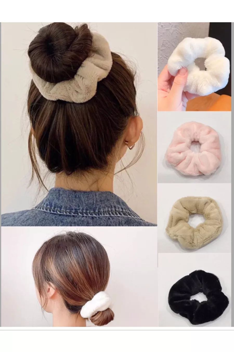 Fermaglio per capelli elastico di qualità con pelo peluche in pelliccia - 4 pezzi