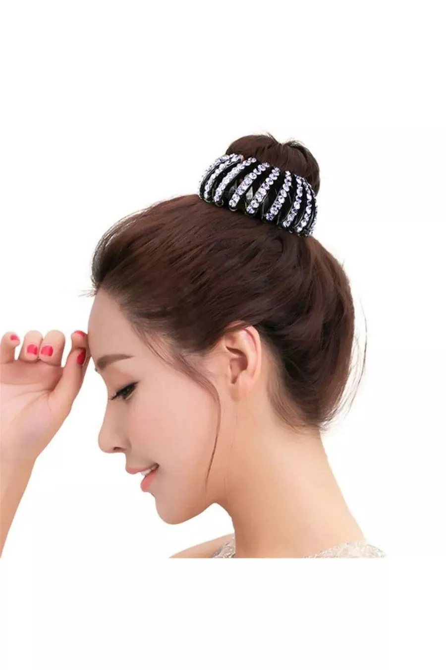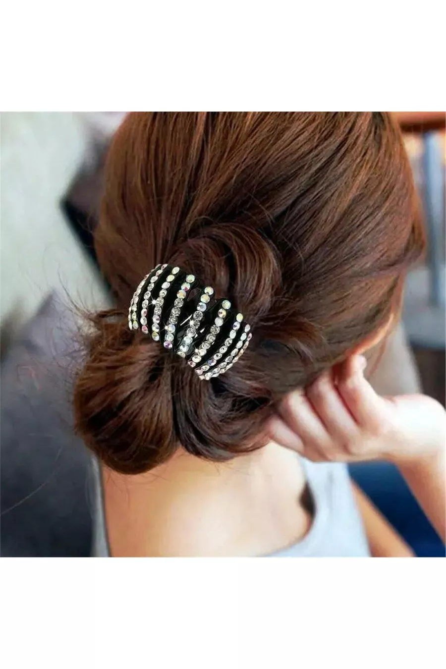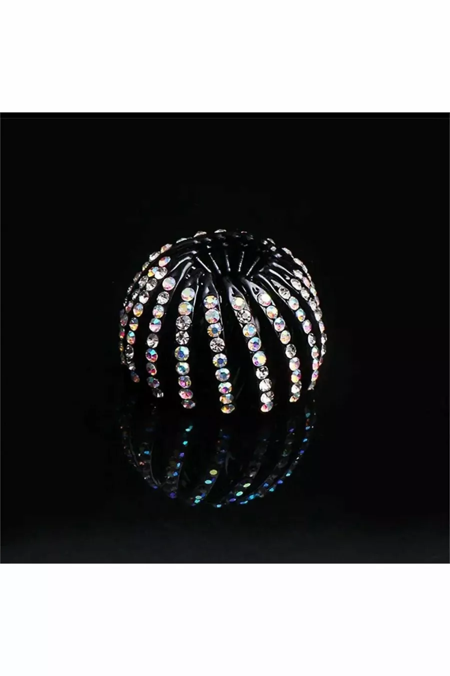 Fermaglio per capelli a chignon apribile con pettine e cristalli bianchi