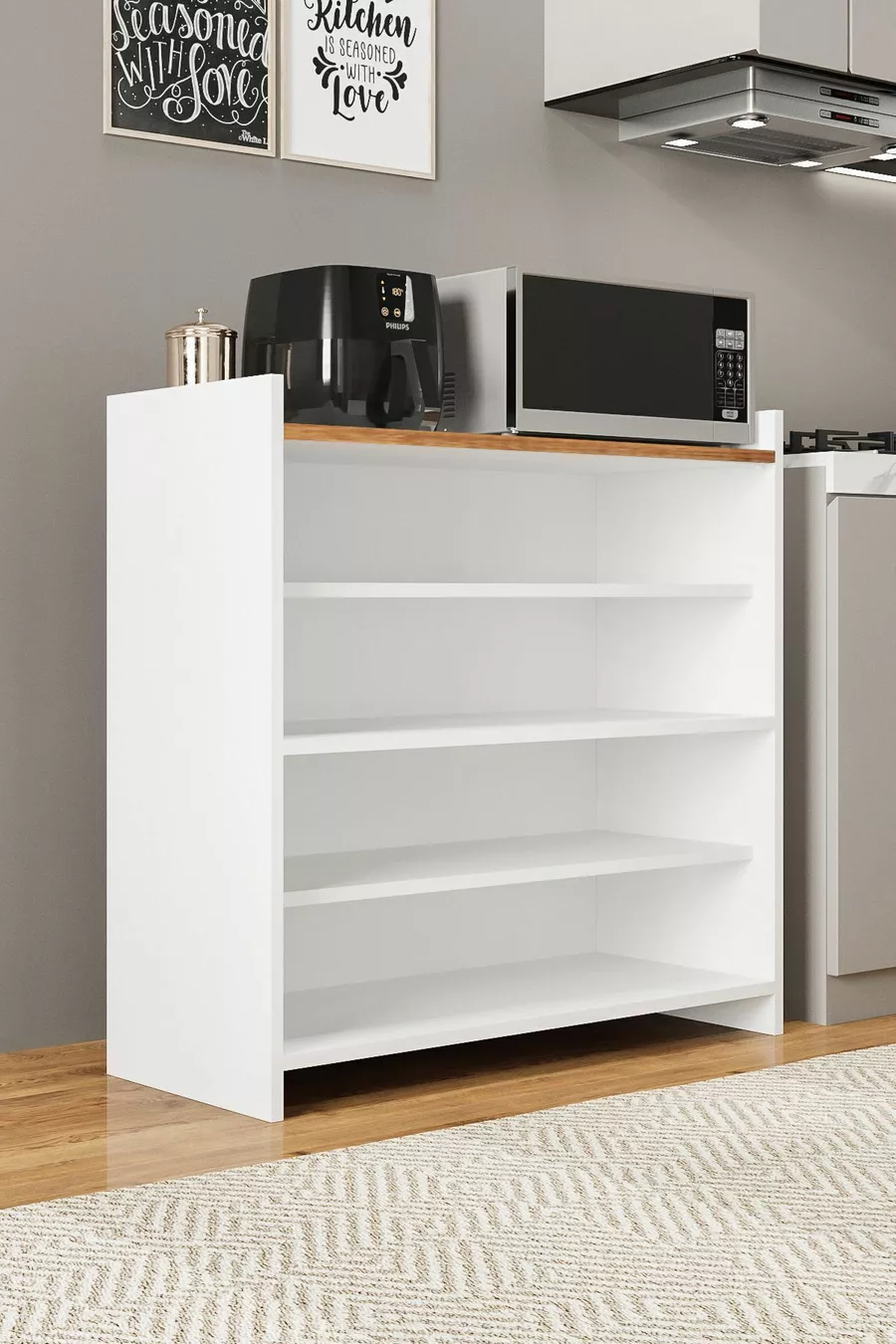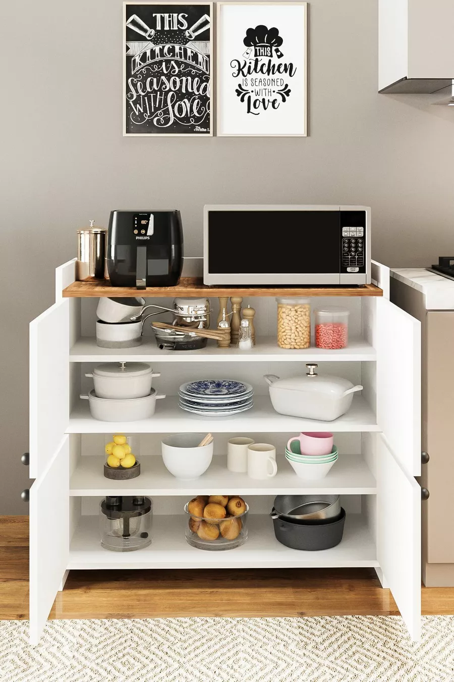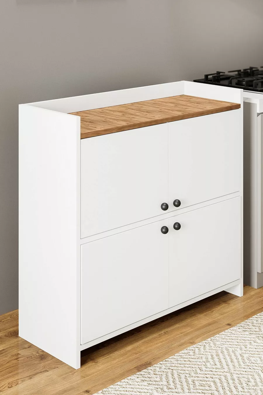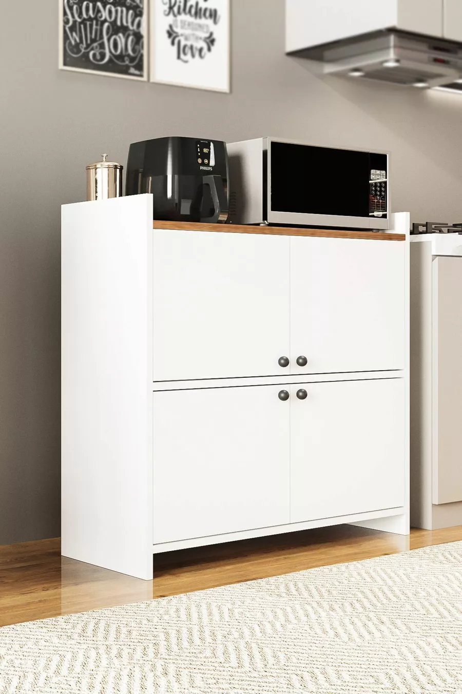 FORUM BIANCO/PINO ARMADIO MULTIUSO CON 4 ANTE E 4 RIPIANI, SCARPIERA, ANGOLO CAFFÈ