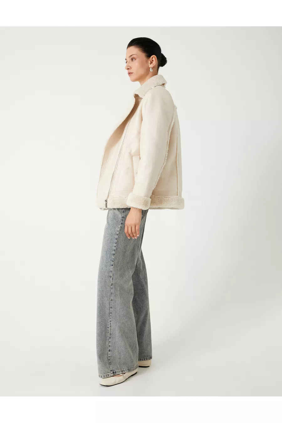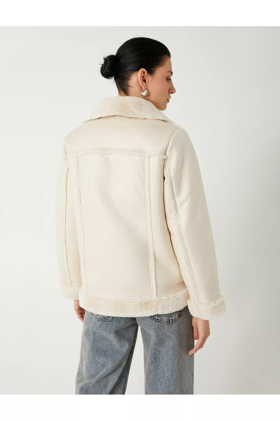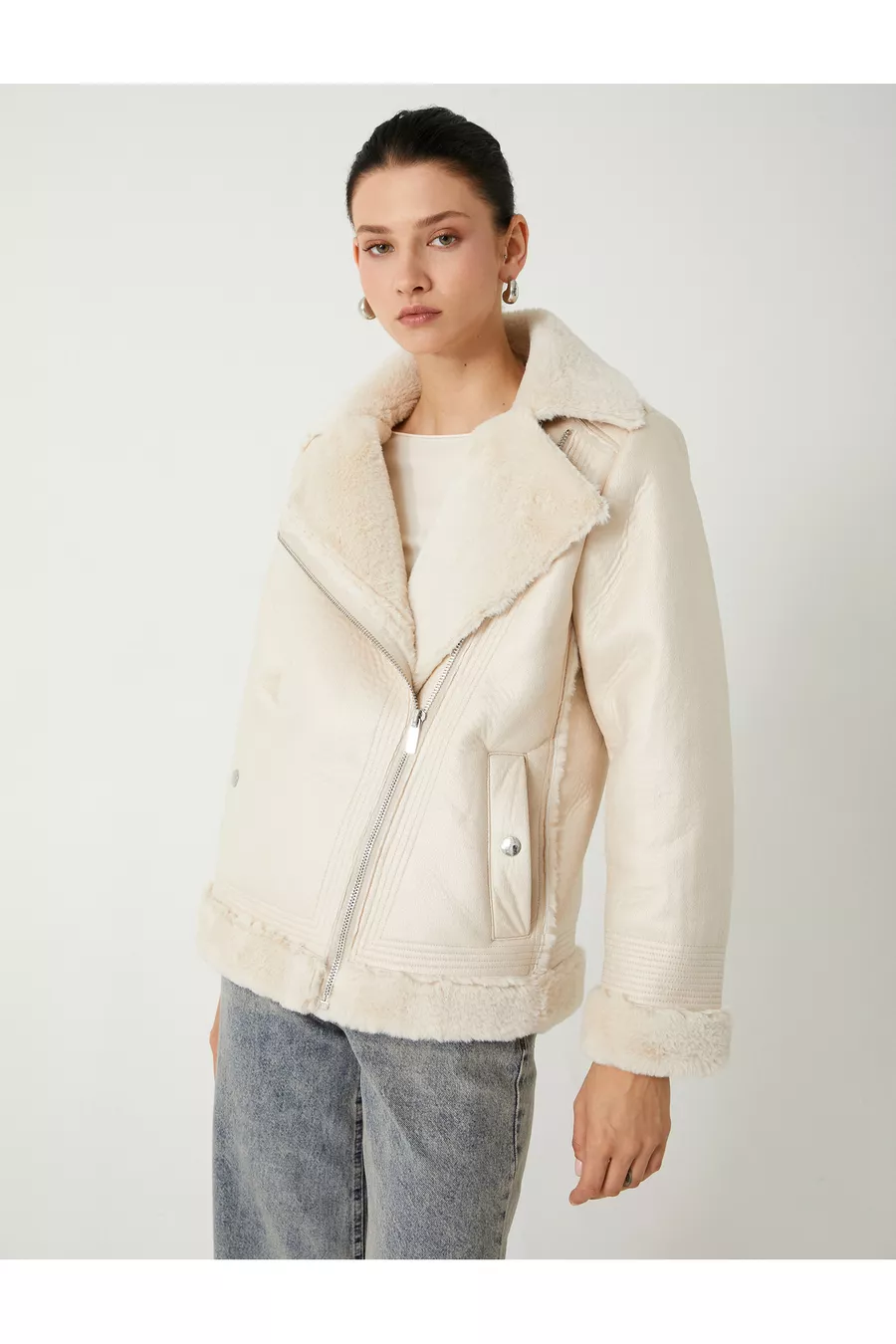 Giacca Biker in Ecopelle con Chiusura Lampo, Tasche, Vestibilità Comoda e Dettagli in Pelliccia Sintetica sul Collo