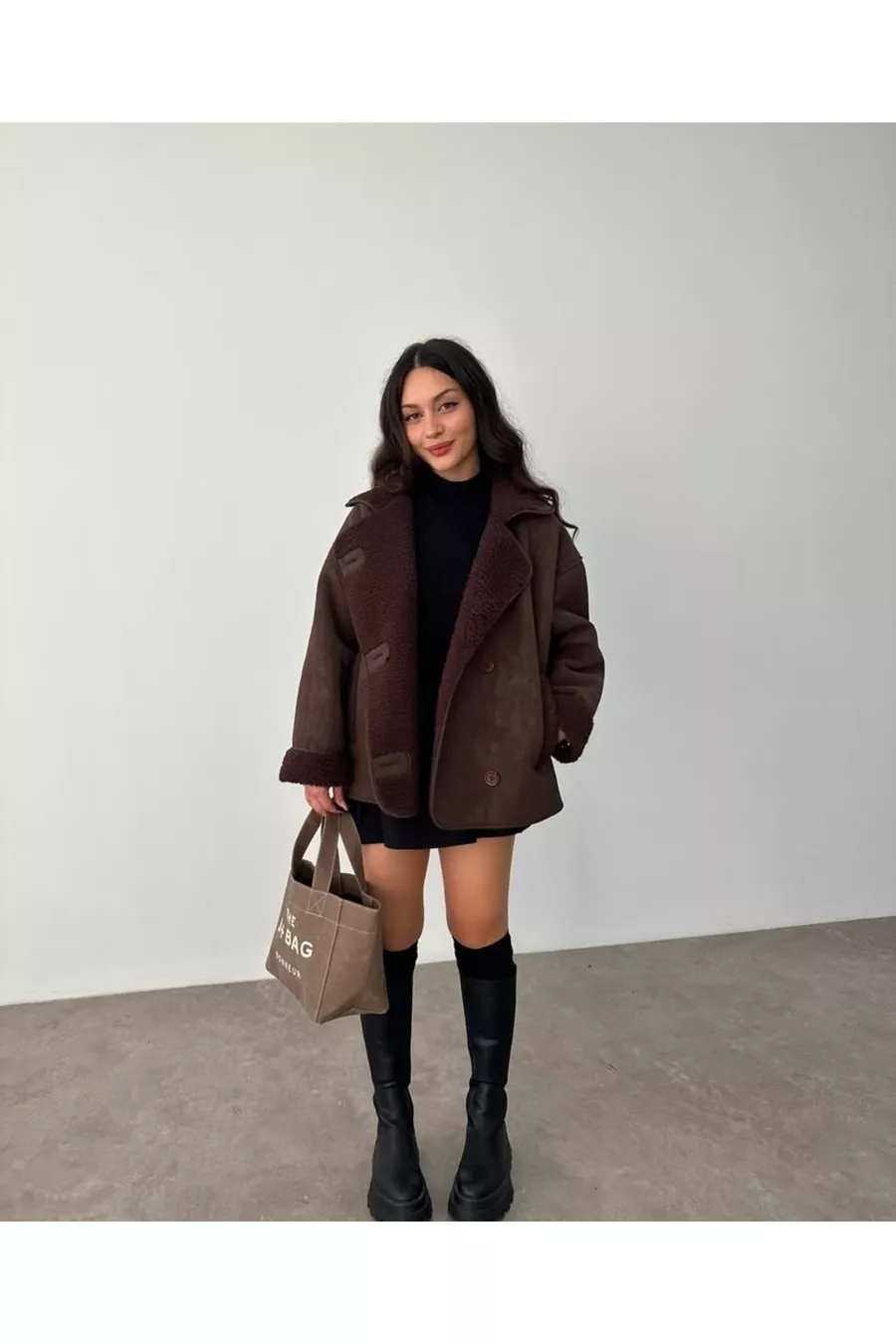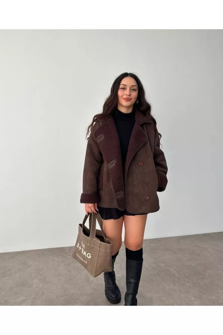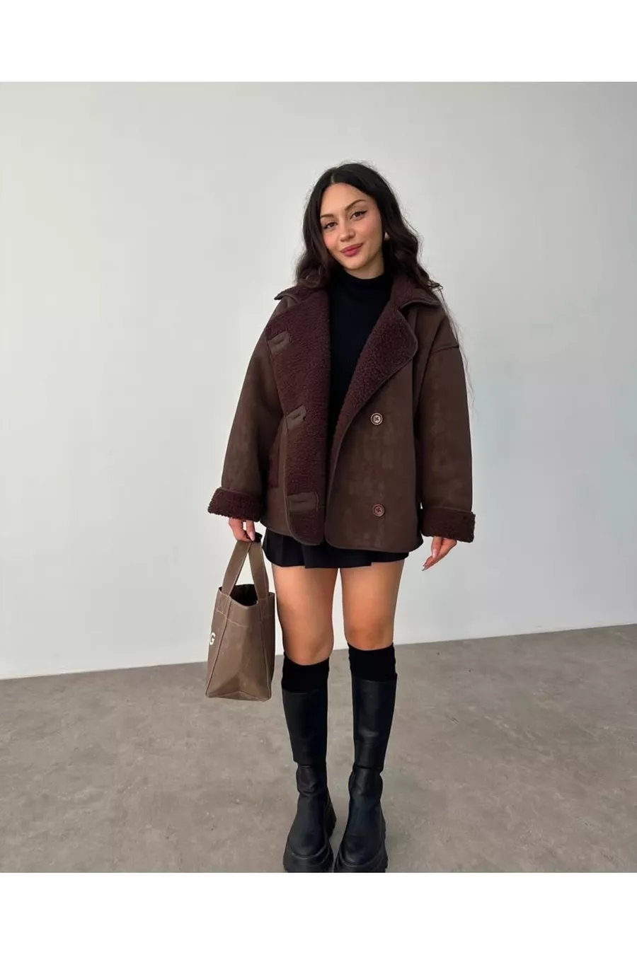 Giacca imbottita in peluche con bottoni da pastore