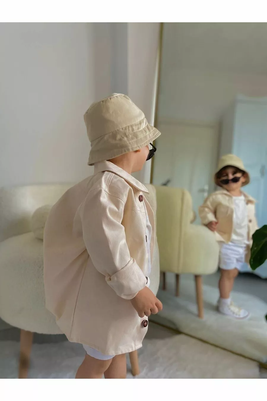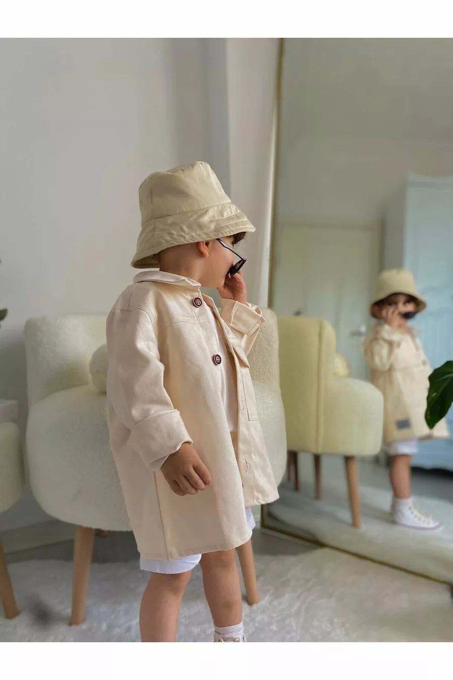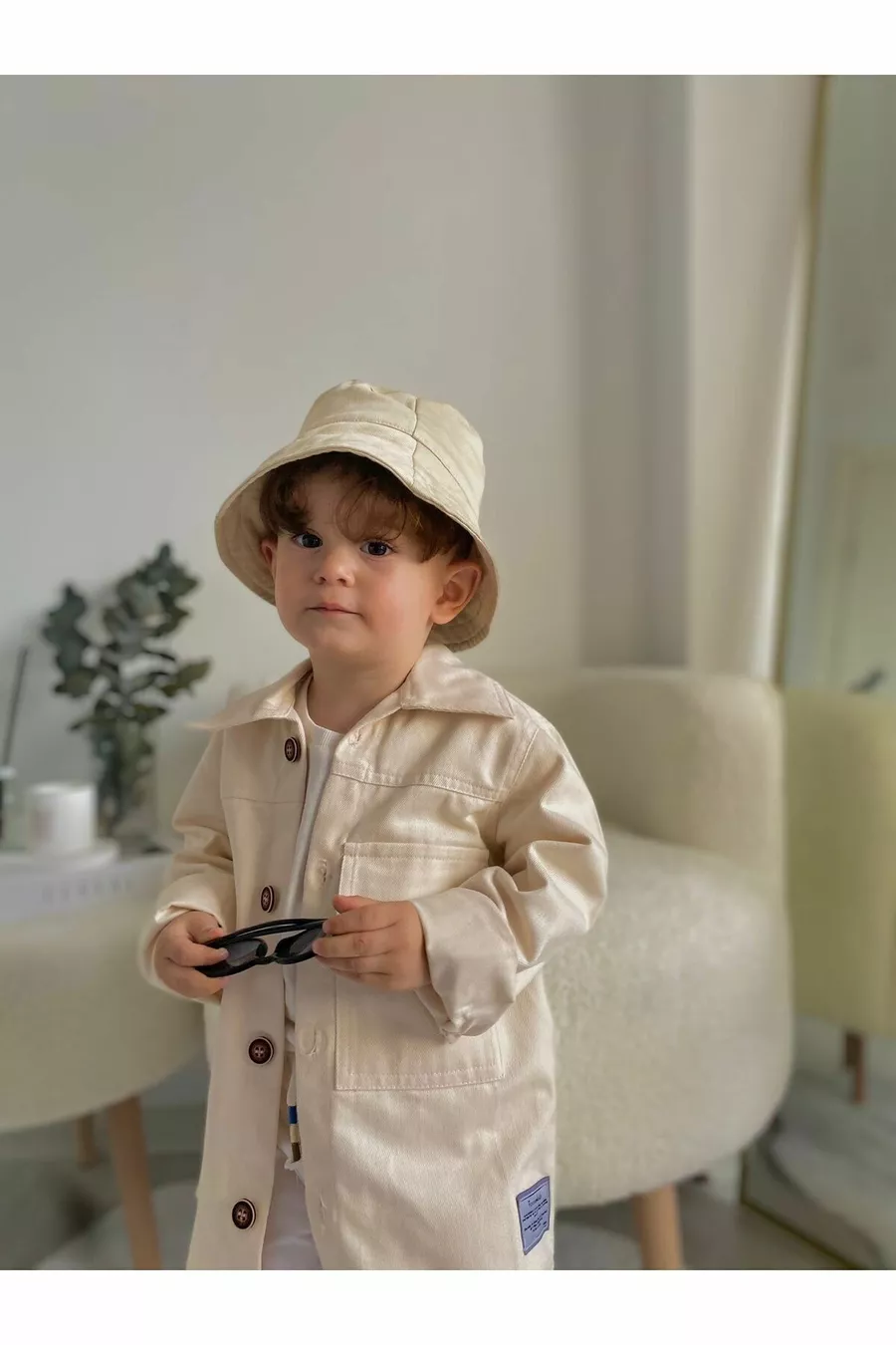 Giacca in Denim Trench Color Crema Abbigliamento per Bambini e Neonati Elegante per Feste e Occasioni Speciali