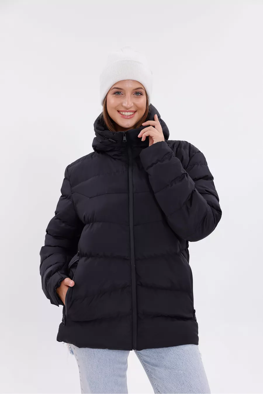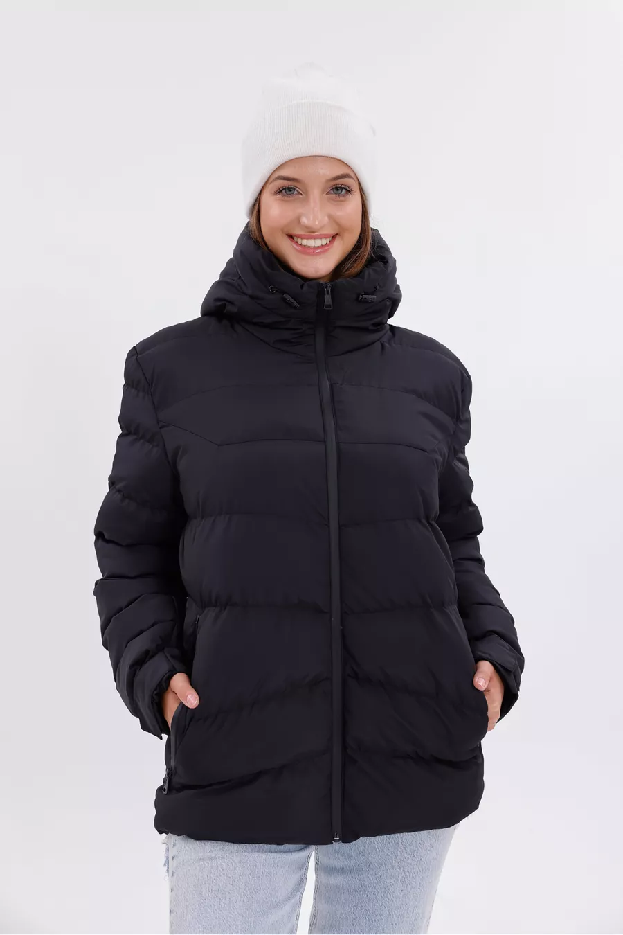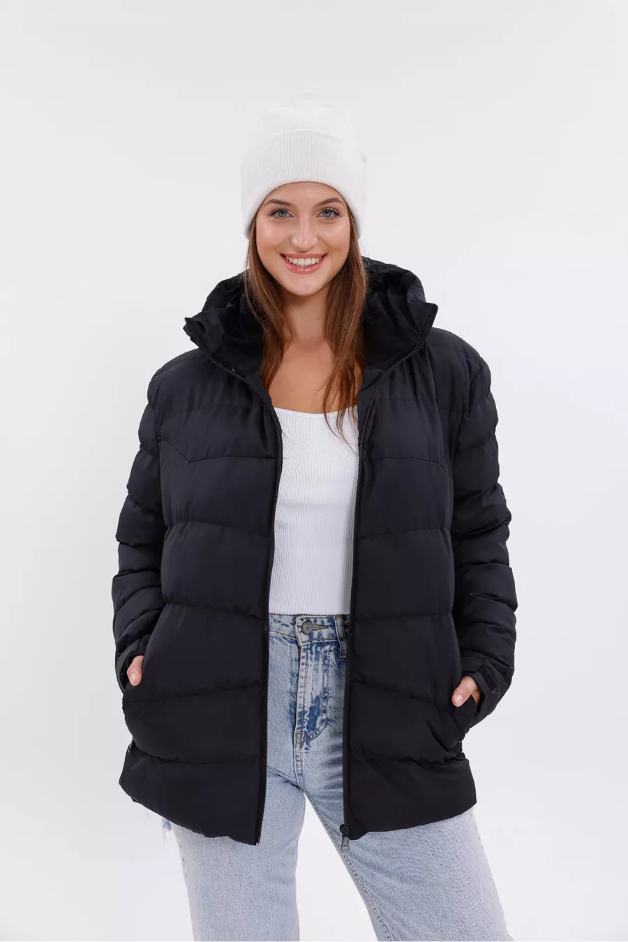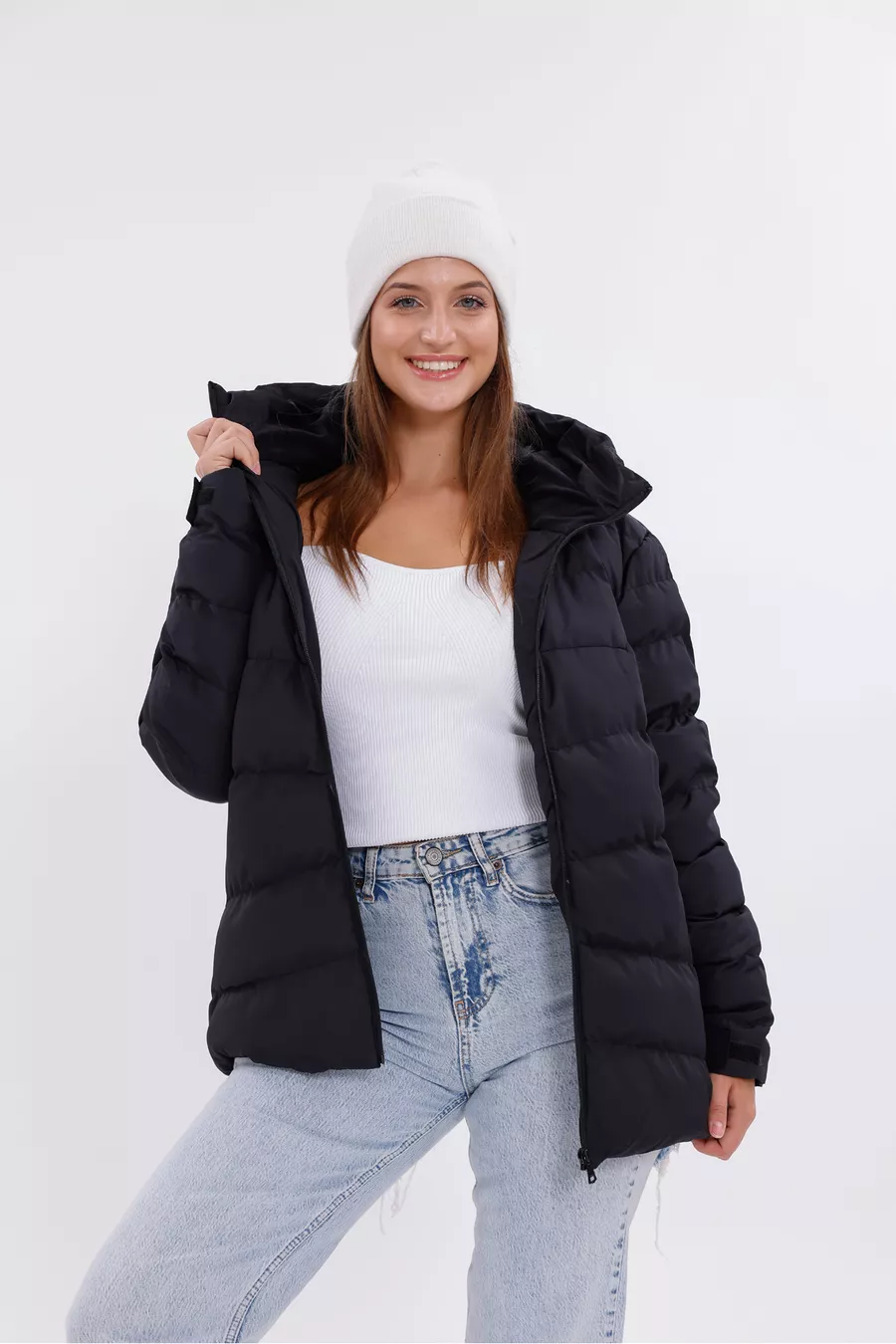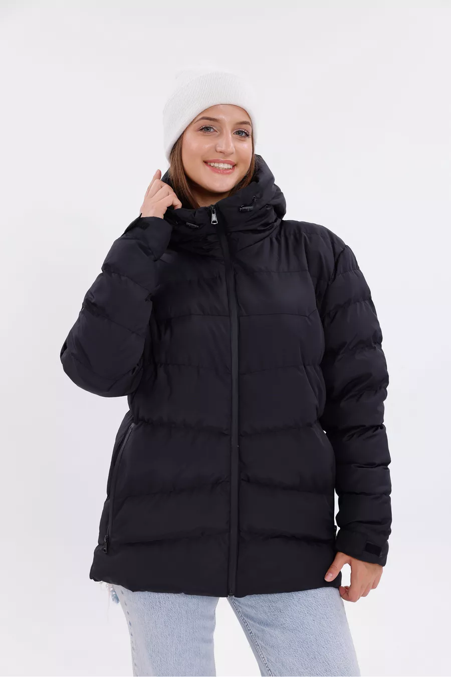 Giacca Parka Donna Nera con Cappuccio, Interno in Pile, Pelliccia, Impermeabile e Resistente al Vento, Trapuntata