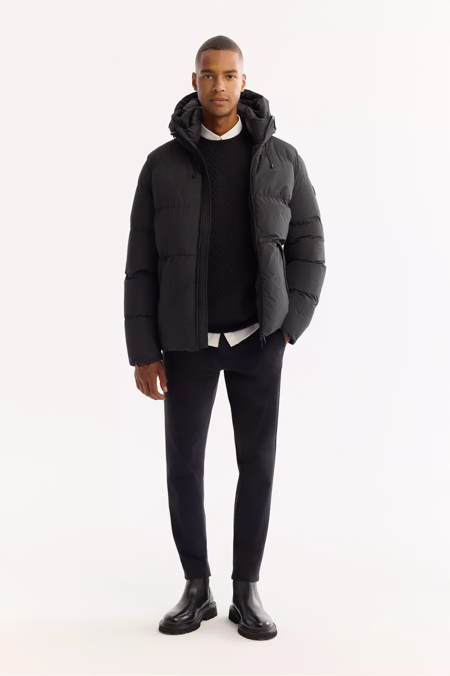 Giacca Uomo Nera con Cappuccio, Idrorepellente, Antivento, Resistente fino a -5°C, Imbottita Comfort Fit