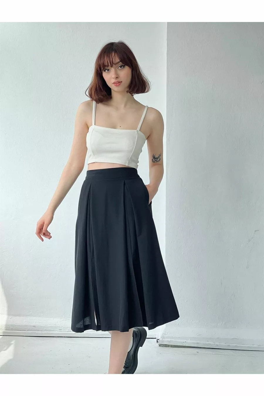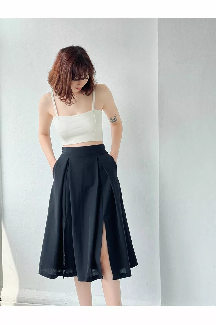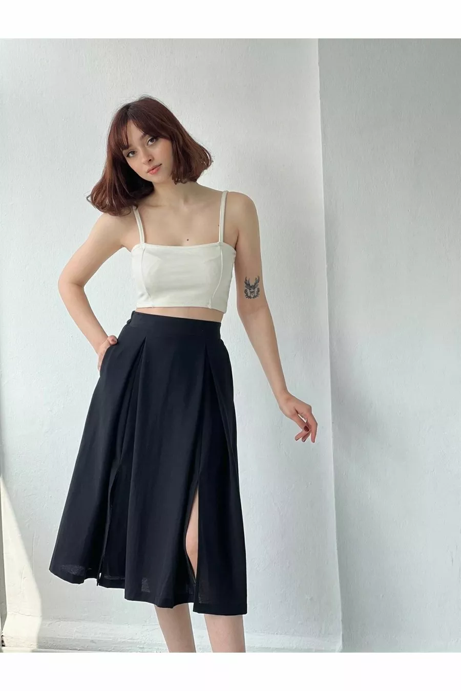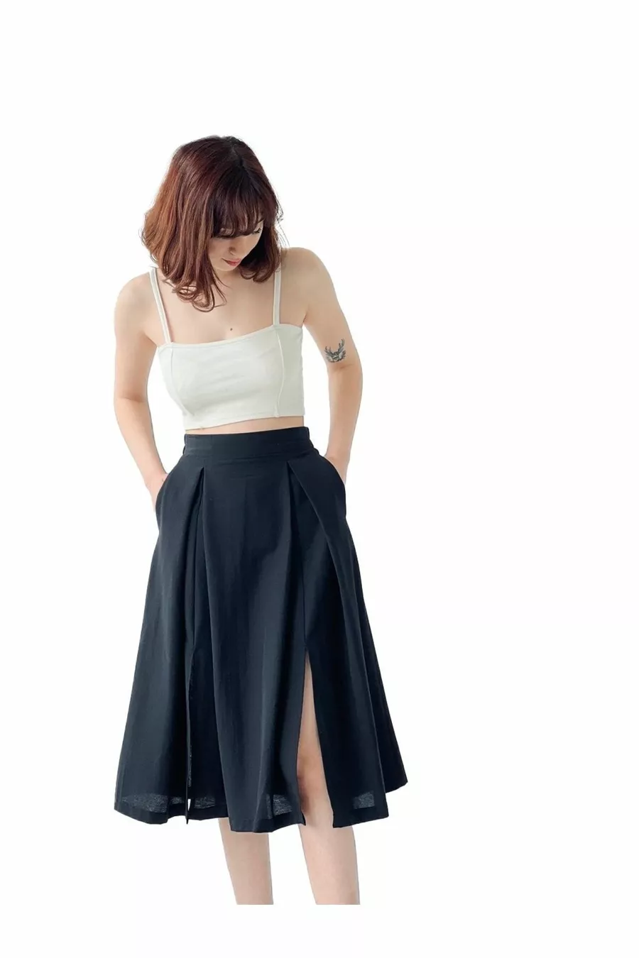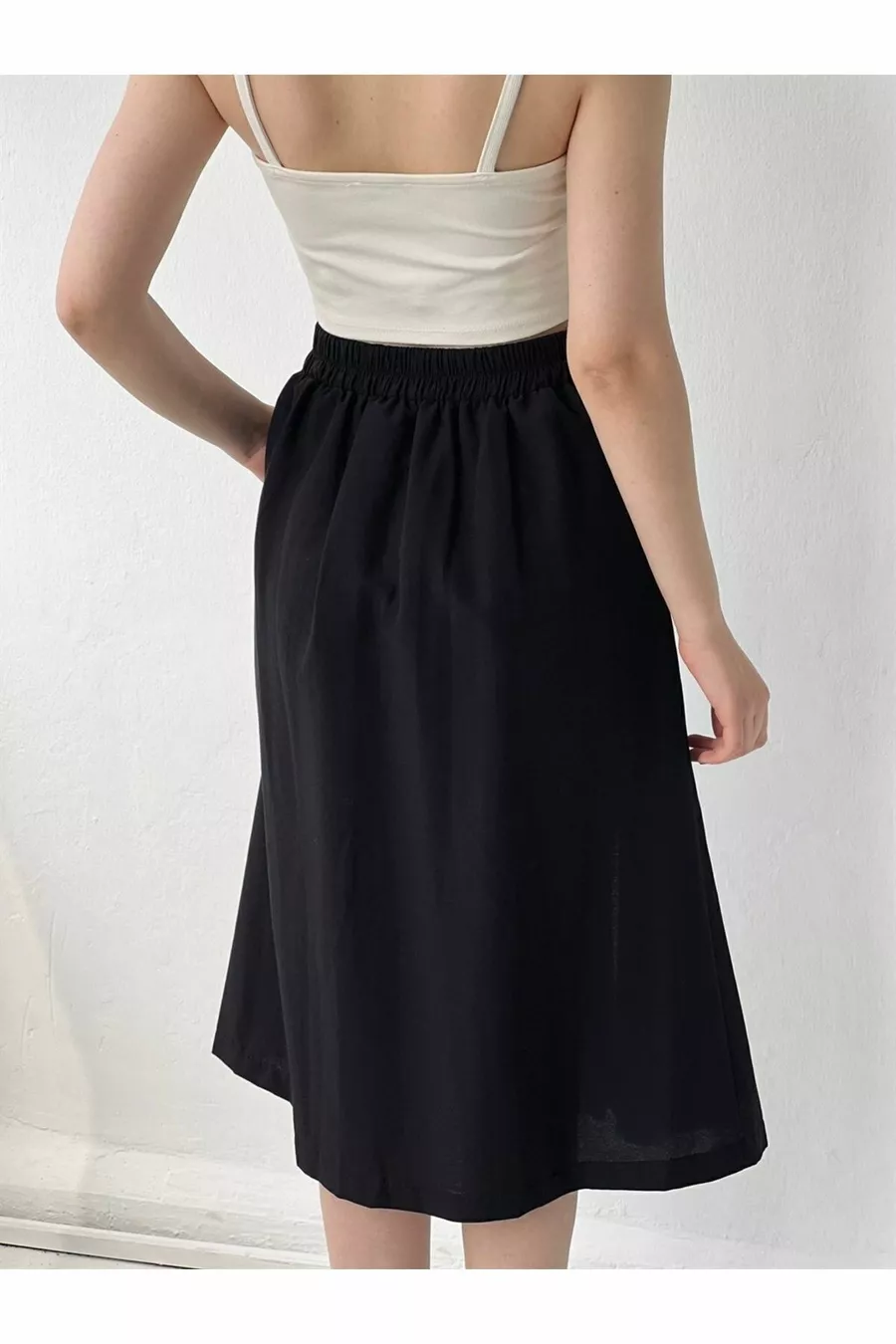 Gonna a vita alta con spacco (con tasche) Donna nera