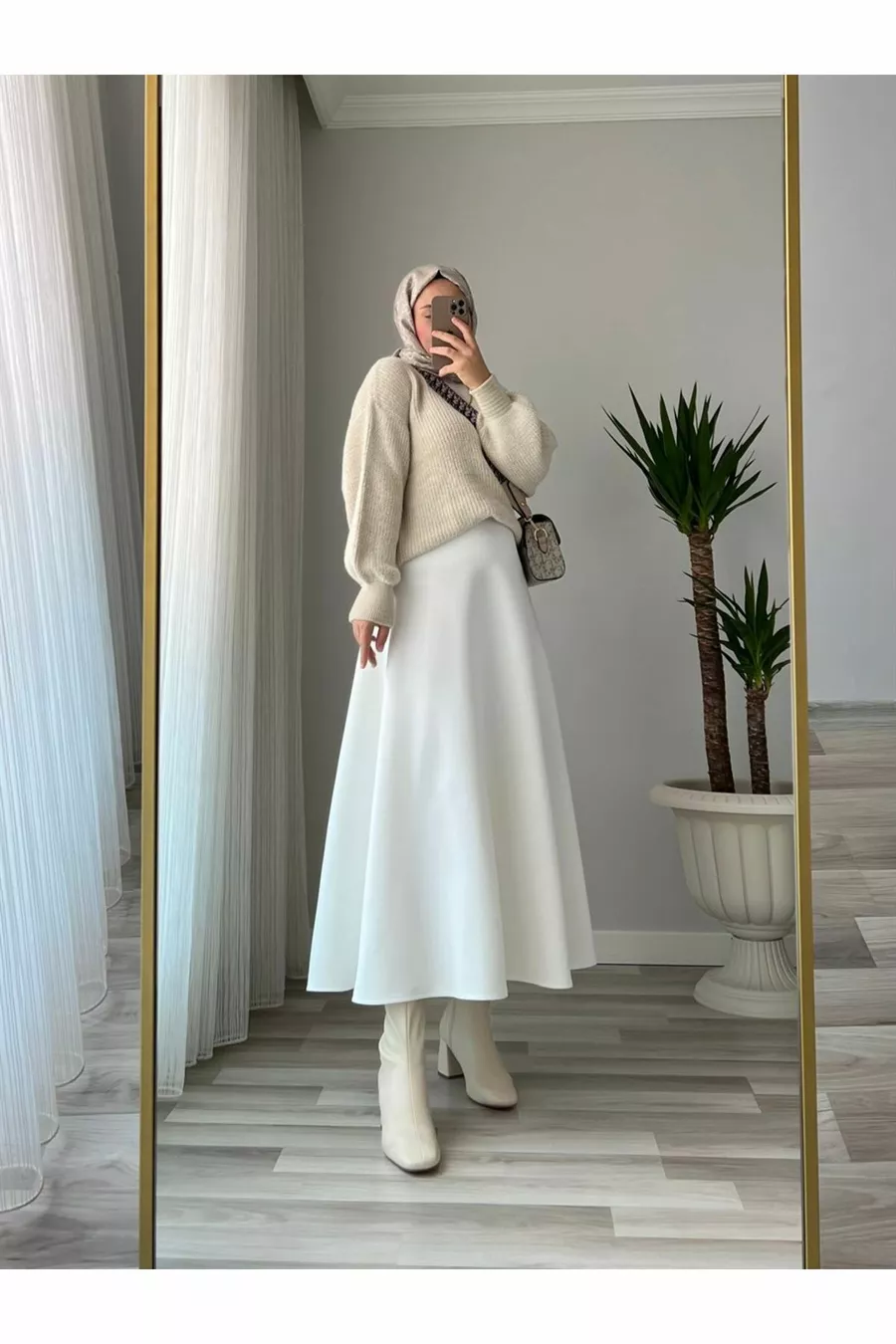 Gonna a ruota bianca da donna in scuba con copertura