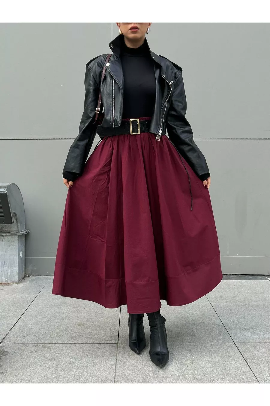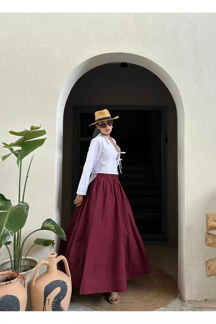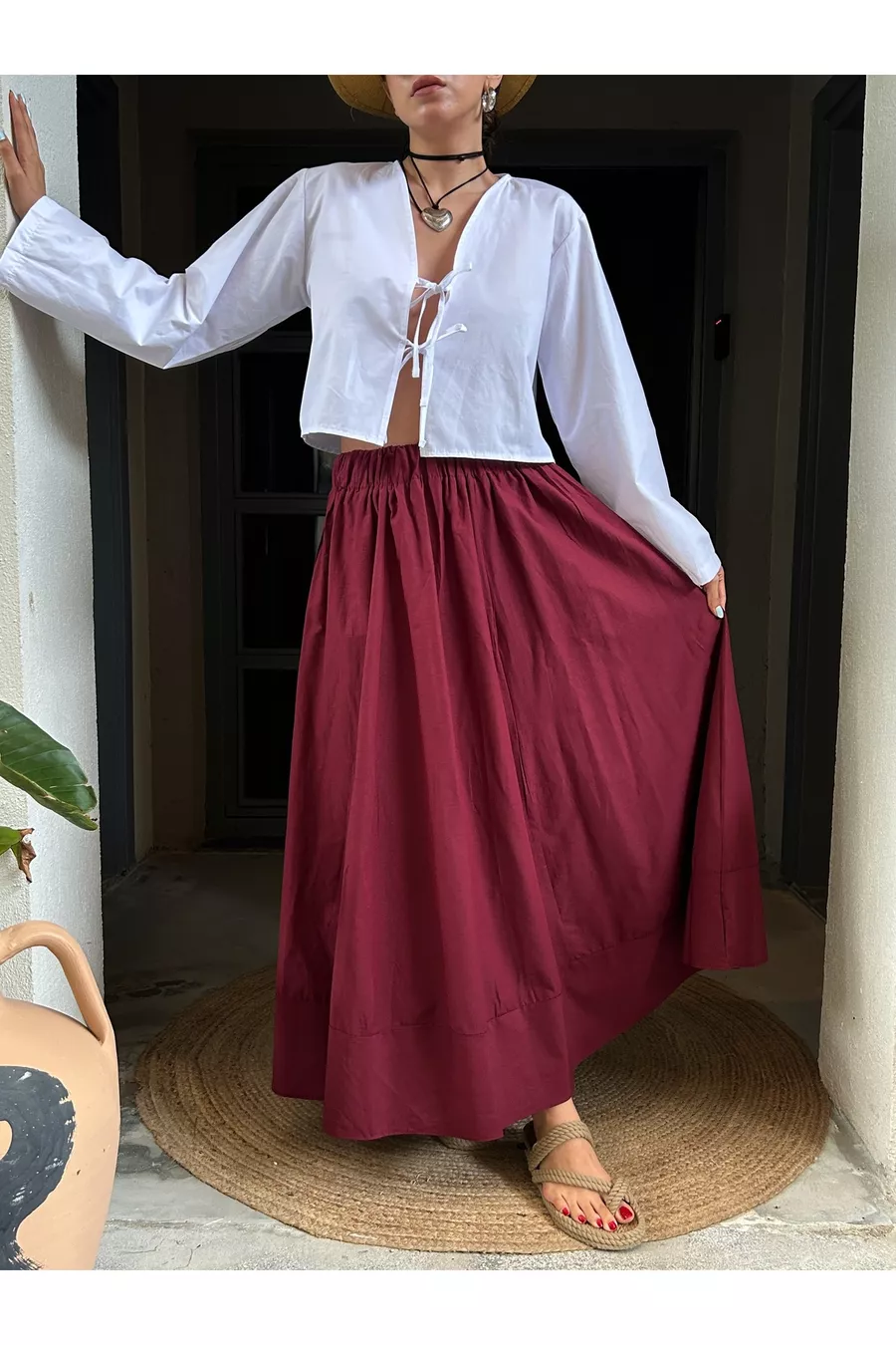 Gonna lunga in popeline con elastico in vita