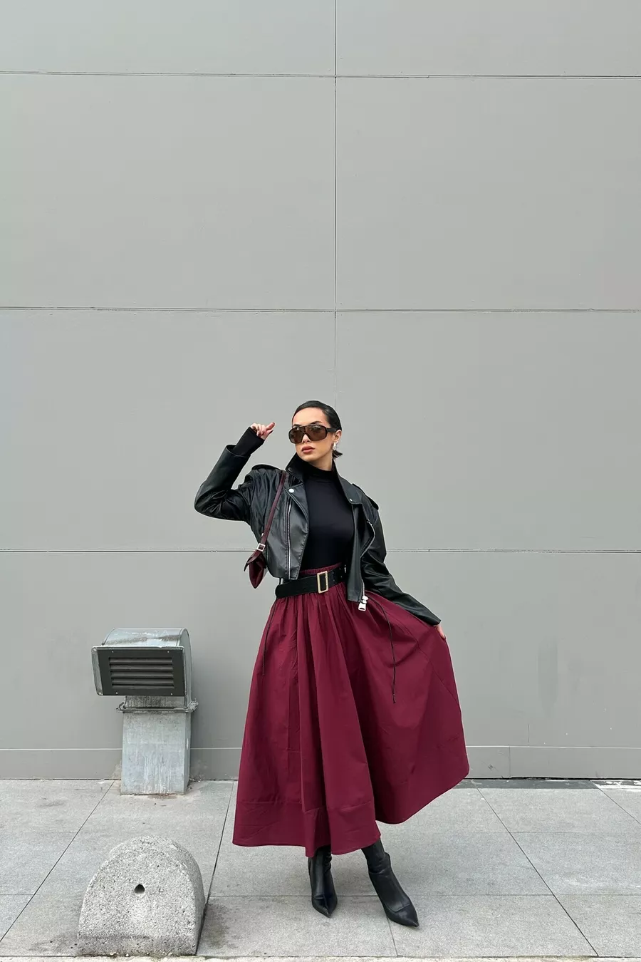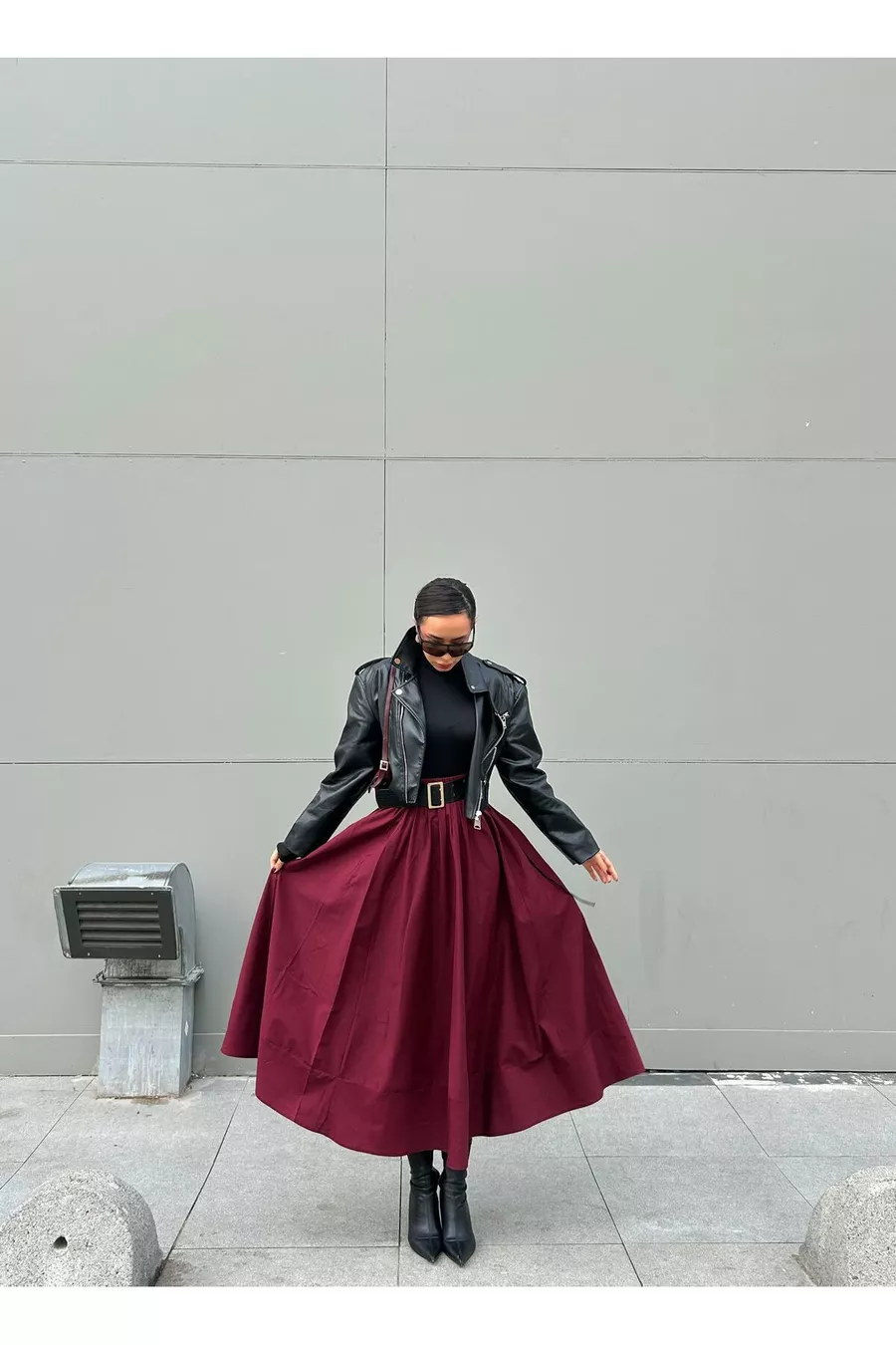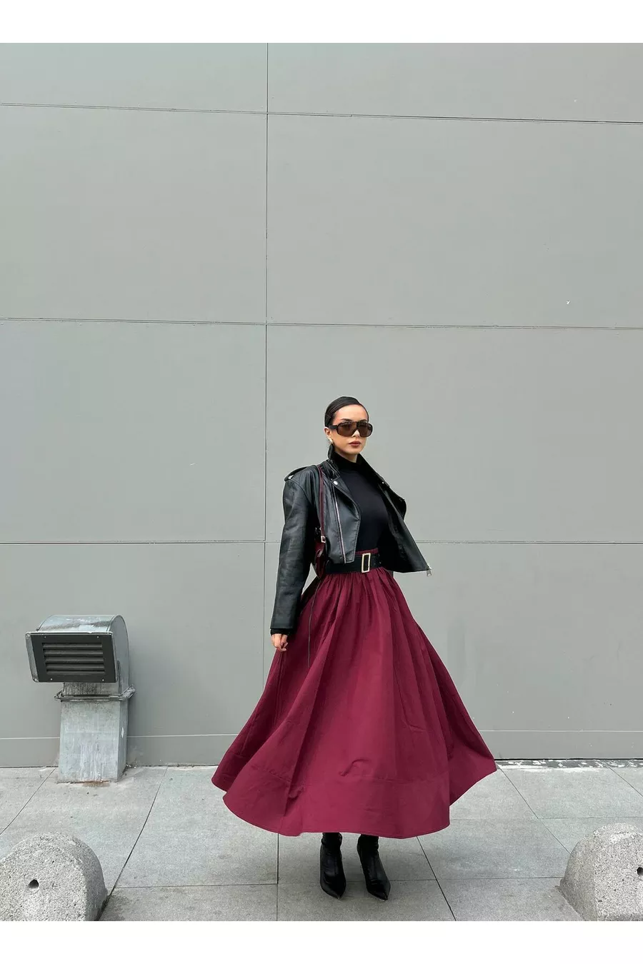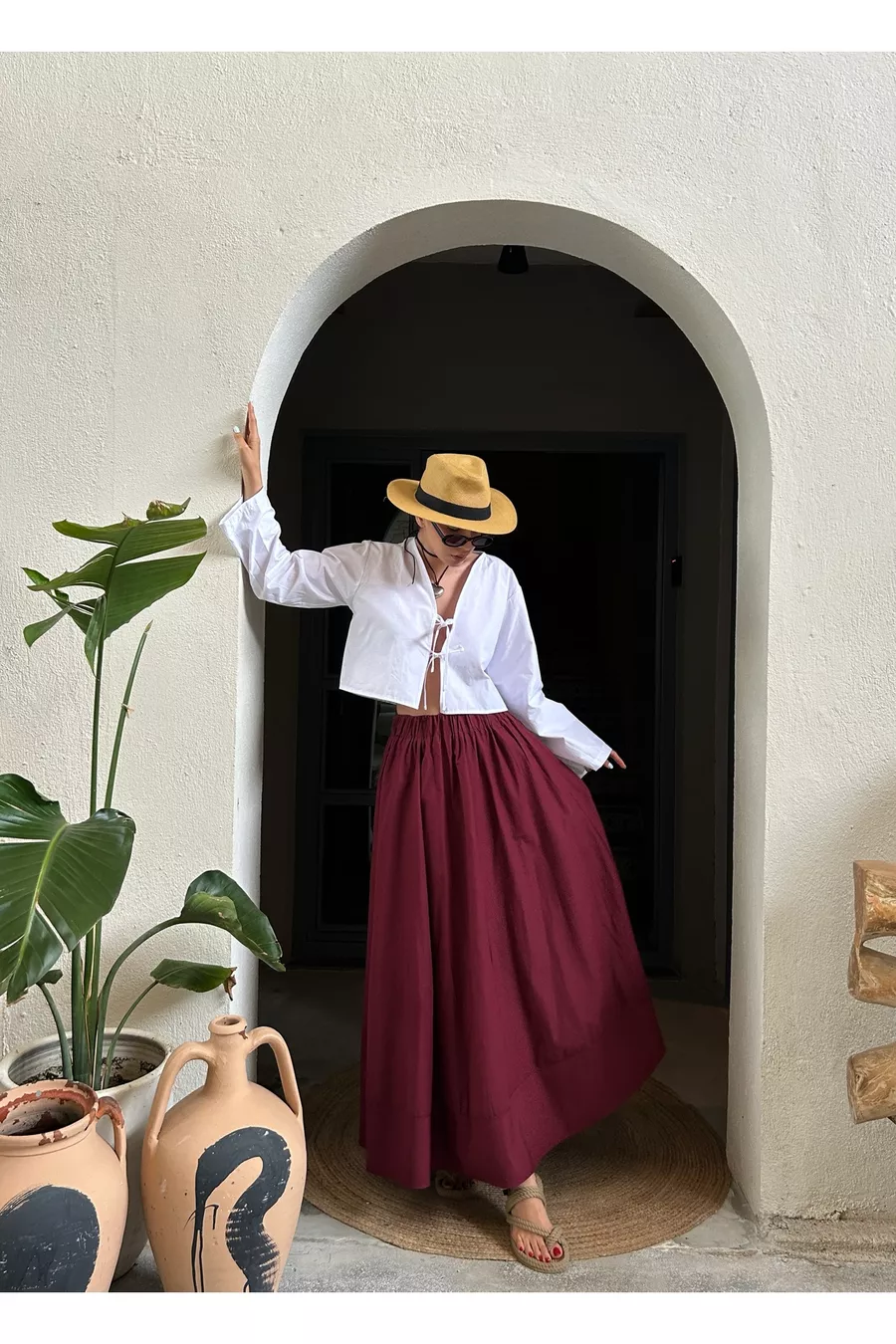 Gonna lunga in popeline con elastico in vita