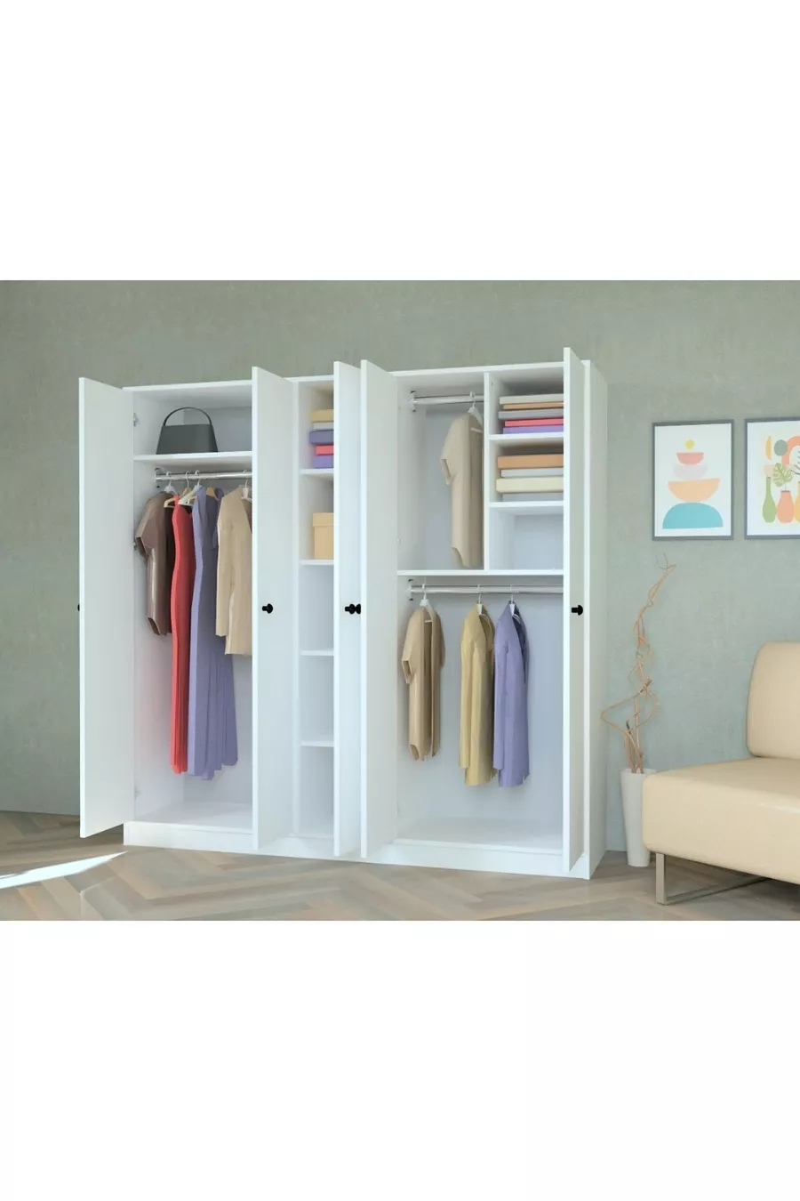 Funzione: Con sportello Colore: Bianco Larghezza: 180 cm Profondità: 50 - 60 cm Numero di sportelli: 5 Materiale del corpo: Truciolare Funzione specchio: Senza specchio Stile: Classico Tema / Stile: Country Origine: TR Caratteristica: Con sportello
