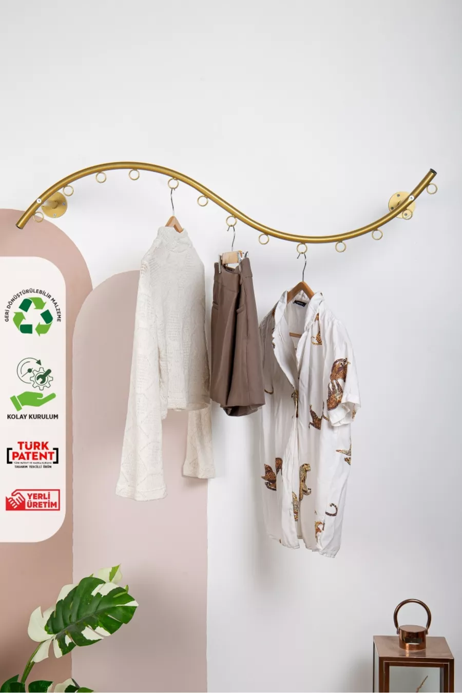Materiale: Metallo Colore: Oro Altezza: 5 cm Larghezza: 103 cm Tipo di appendiabiti: Da parete Stile: Moderno Tema / Stile: Scandinavo Provenienza: TR Caratteristica: Lungo