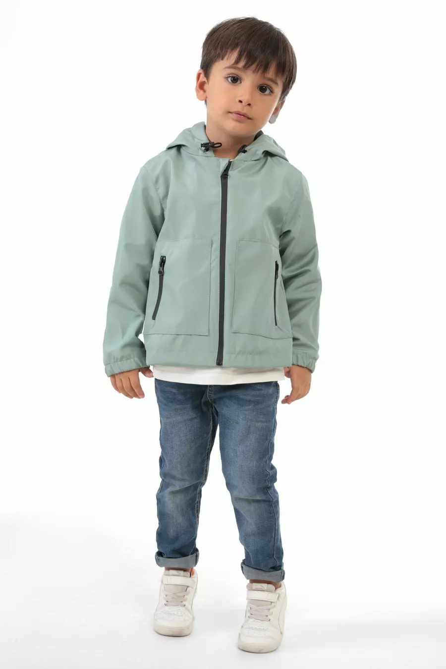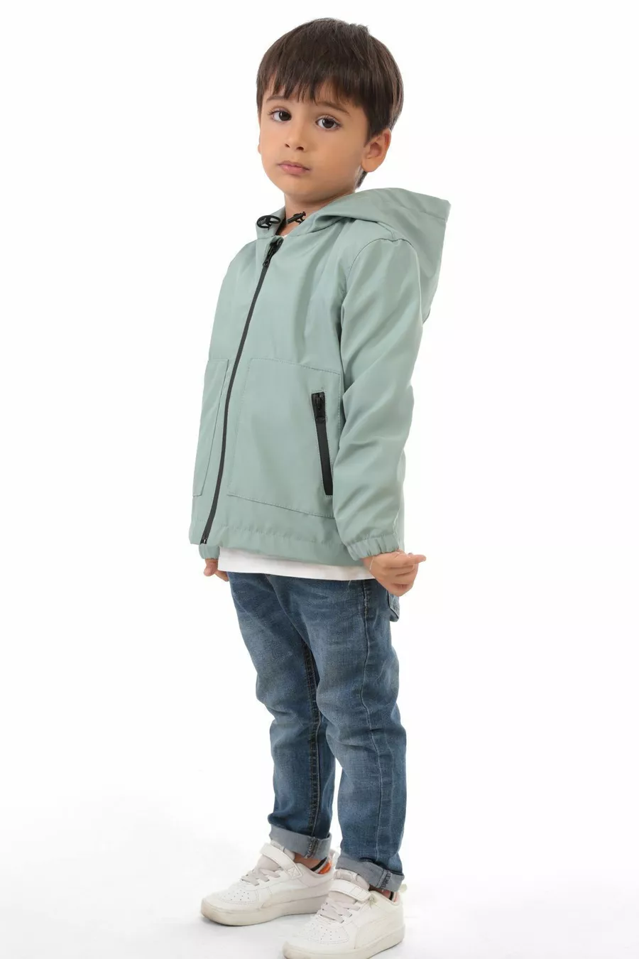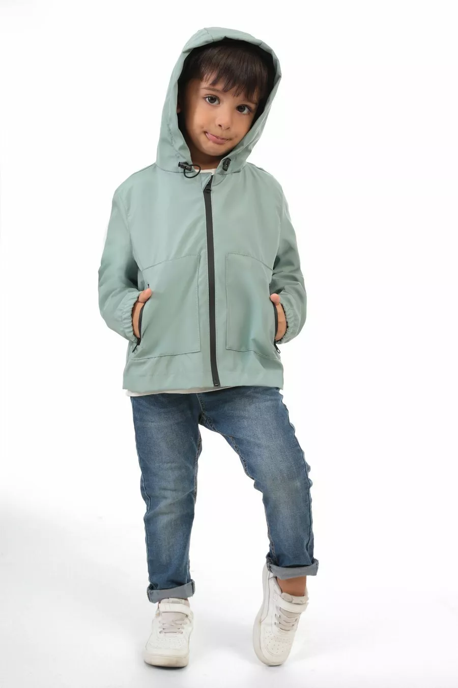 Impermeabile da pioggia con cappuccio a doppia cerniera per bambino, colore verde menta, con fodera, resistente a acqua e vento