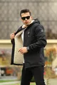 Impermeabile da uomo con cappuccio, tasche e interno in pelliccia