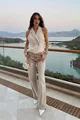 Si consiglia di appendere a testa in giù e asciugare senza pieghe e senza attesa a bassa temperatura, partendo dalla vita e allargando verso la caviglia