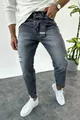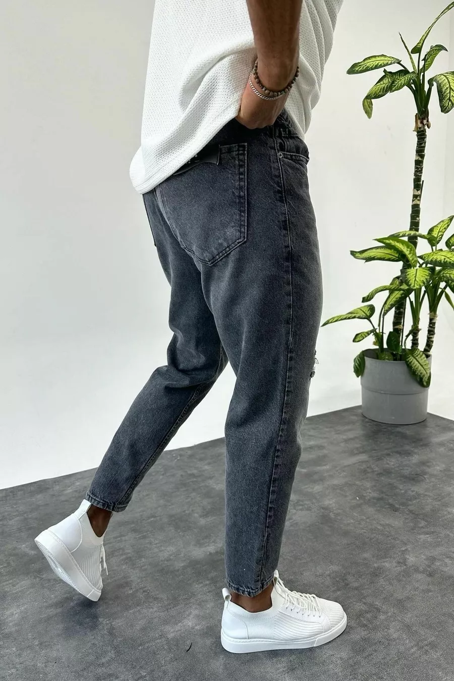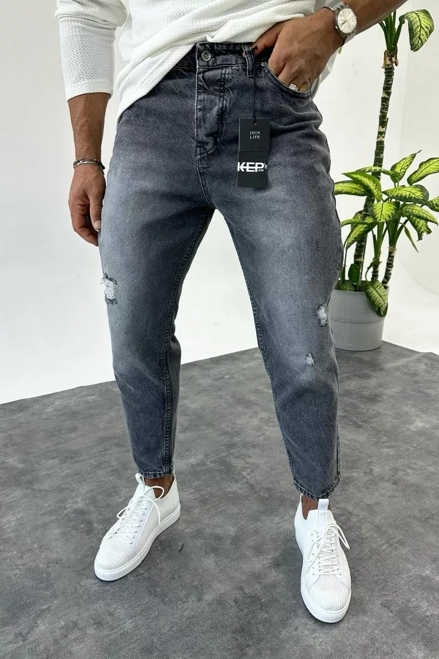 Jeans da uomo boyfriend grigio fumo con dettagli strappati