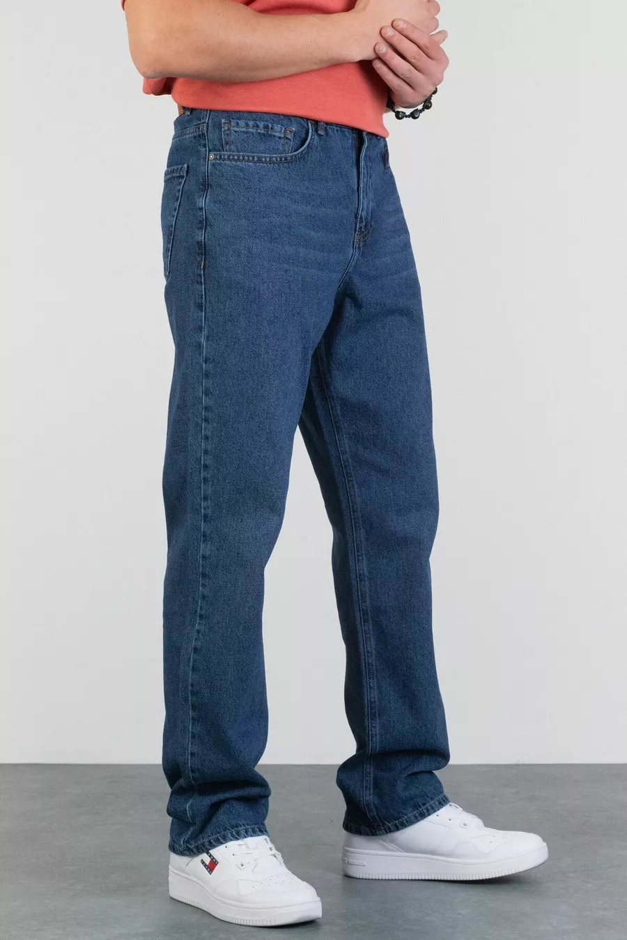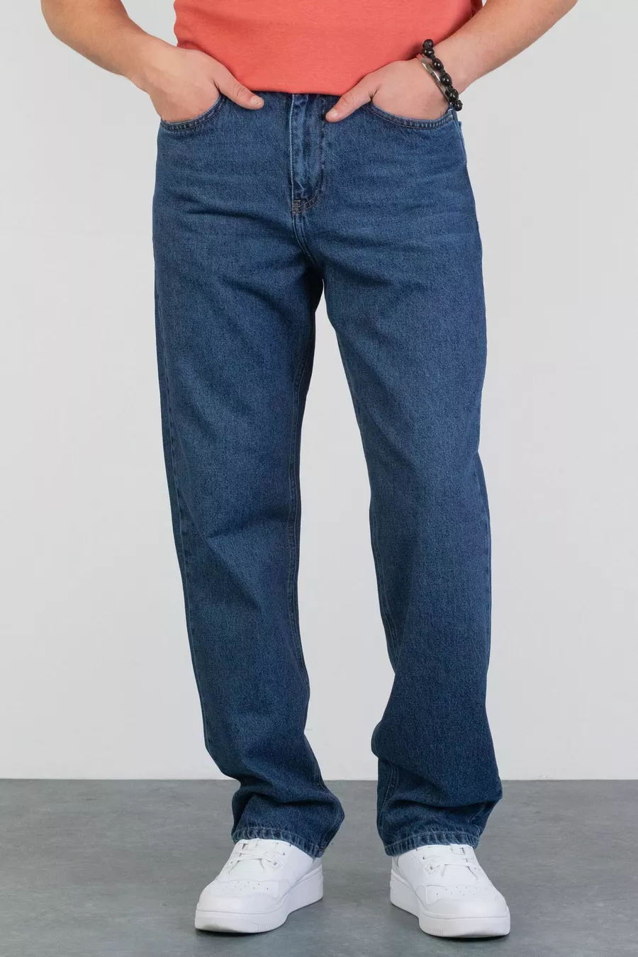 Jeans da uomo blu a gamba dritta, vestibilità comoda e ampia, in denim % cotone LEO
