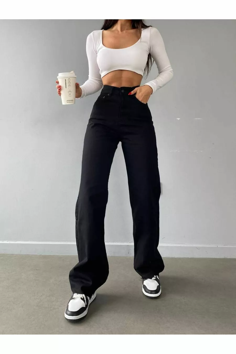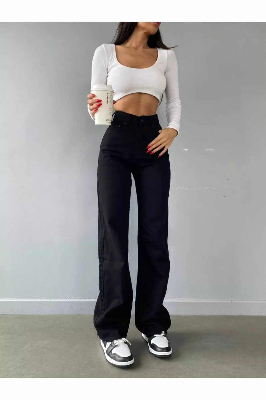 Seduta a vita, che si allarga verso la caviglia. Lavare delicatamente a massimo 30 °C. Non usare candeggina. Non asciugare in asciugatrice. Stirare a bassa temperatura. Lavaggio a secco possibile.