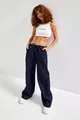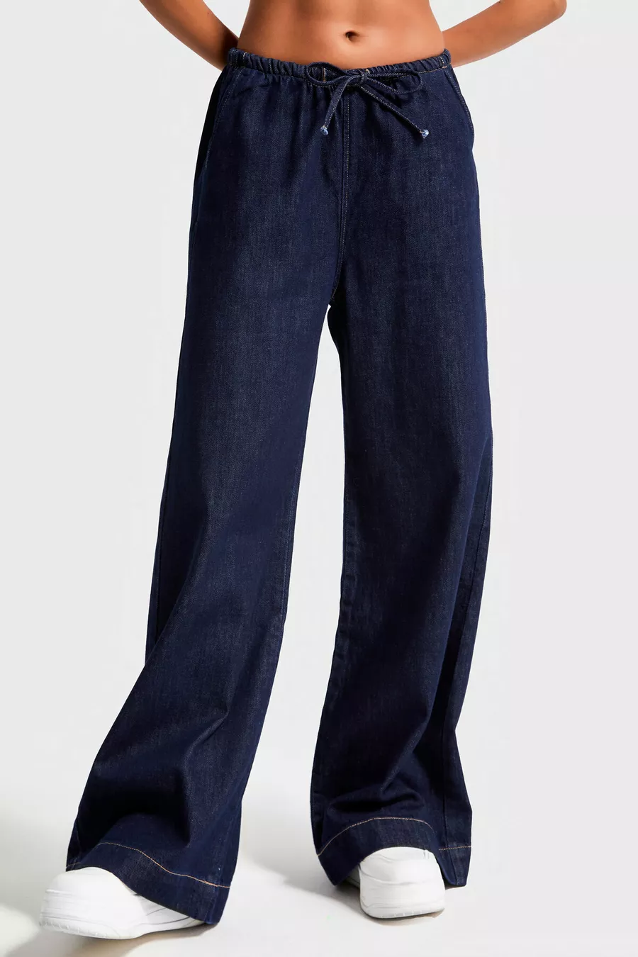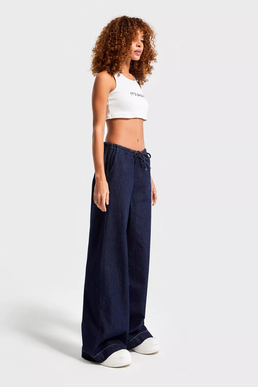 Jeans Donna Colore Indaco Tessuto Comodo Taglio Larga