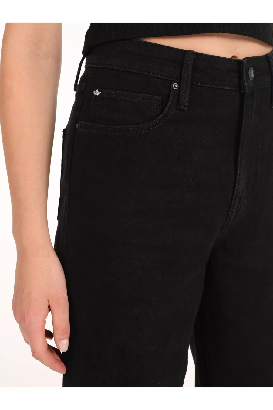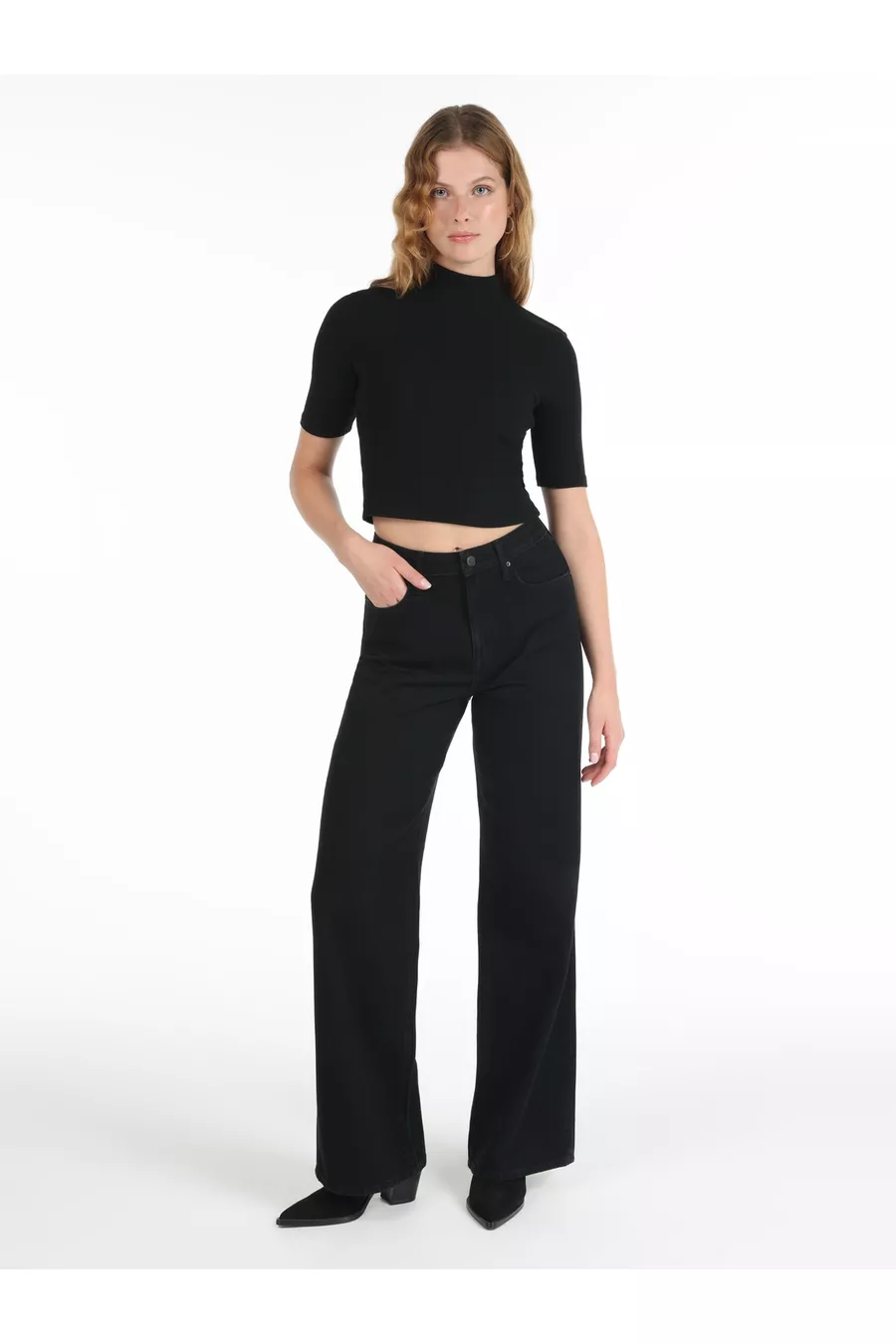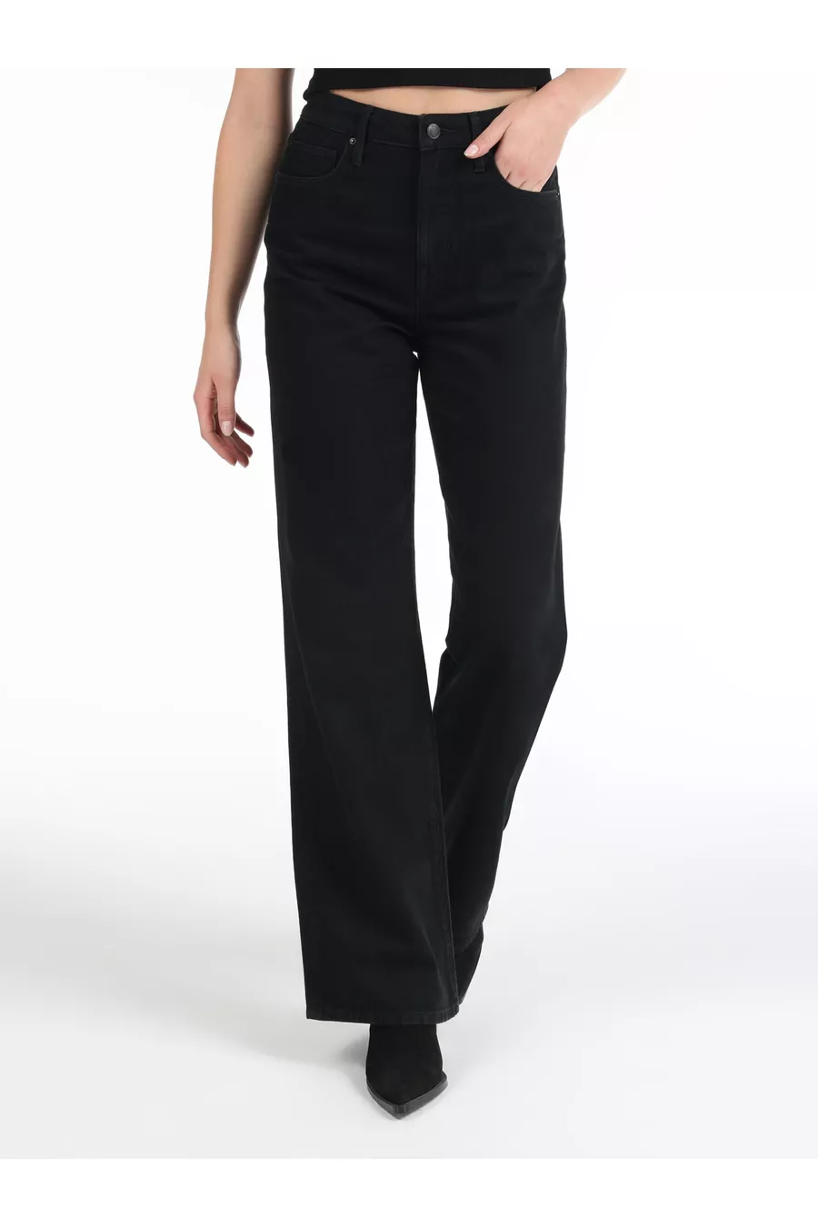 Jeans donna neri Berry, taglio normale, gamba larga, vita alta