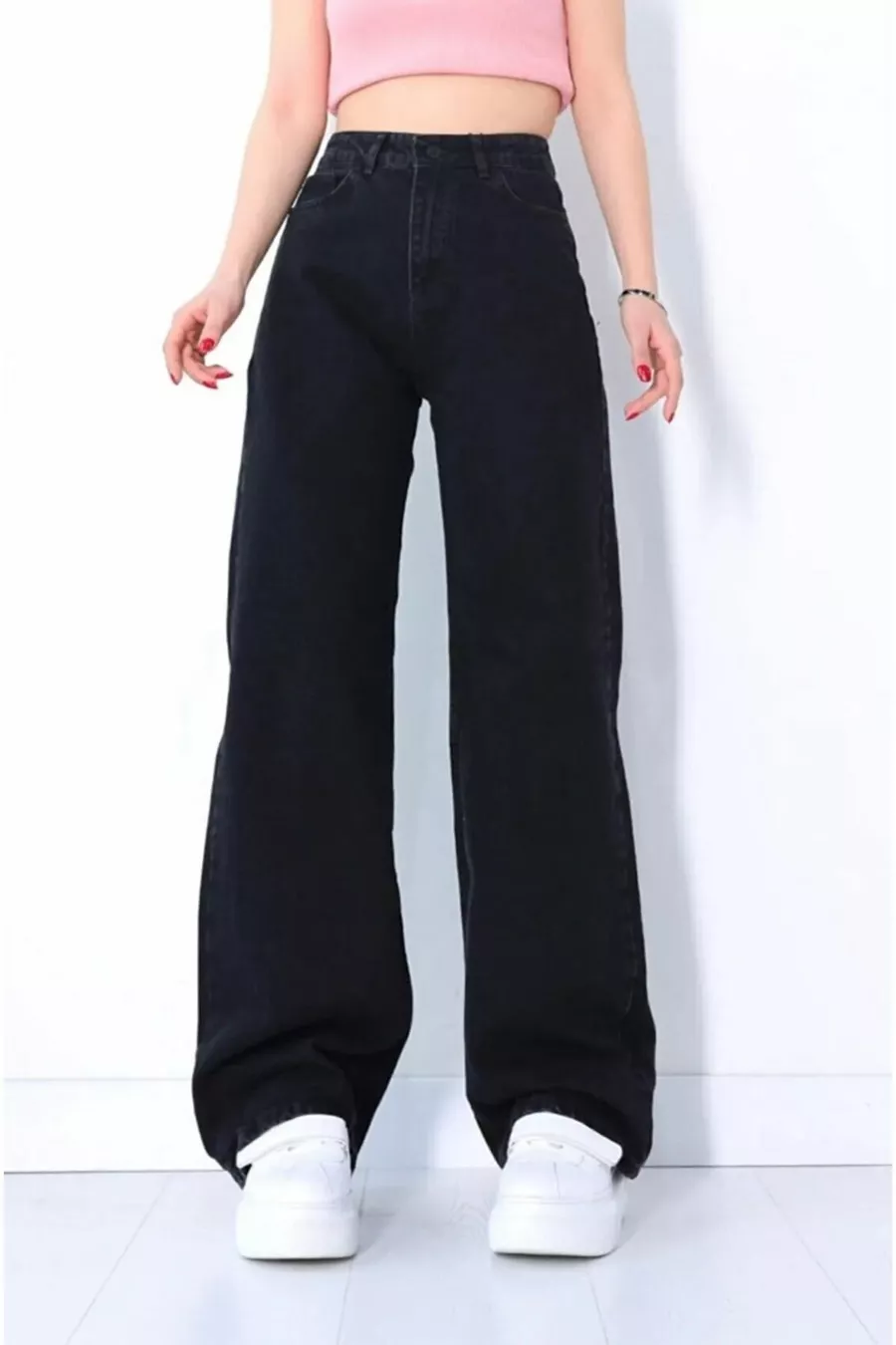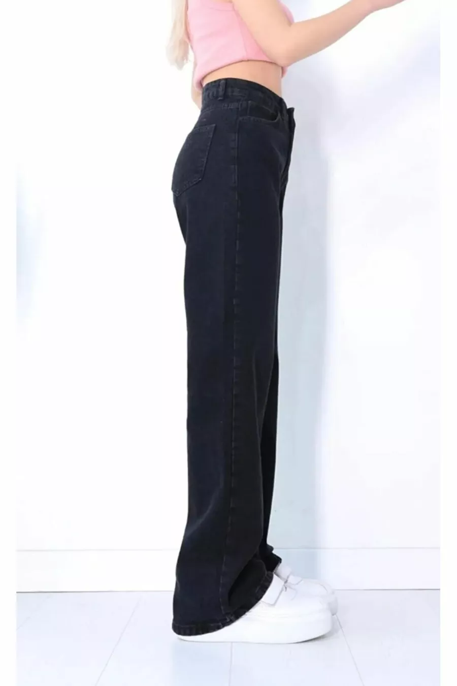 Jeans Donna Palazzo Nero Vita Alta Lycra Premium Ya Star