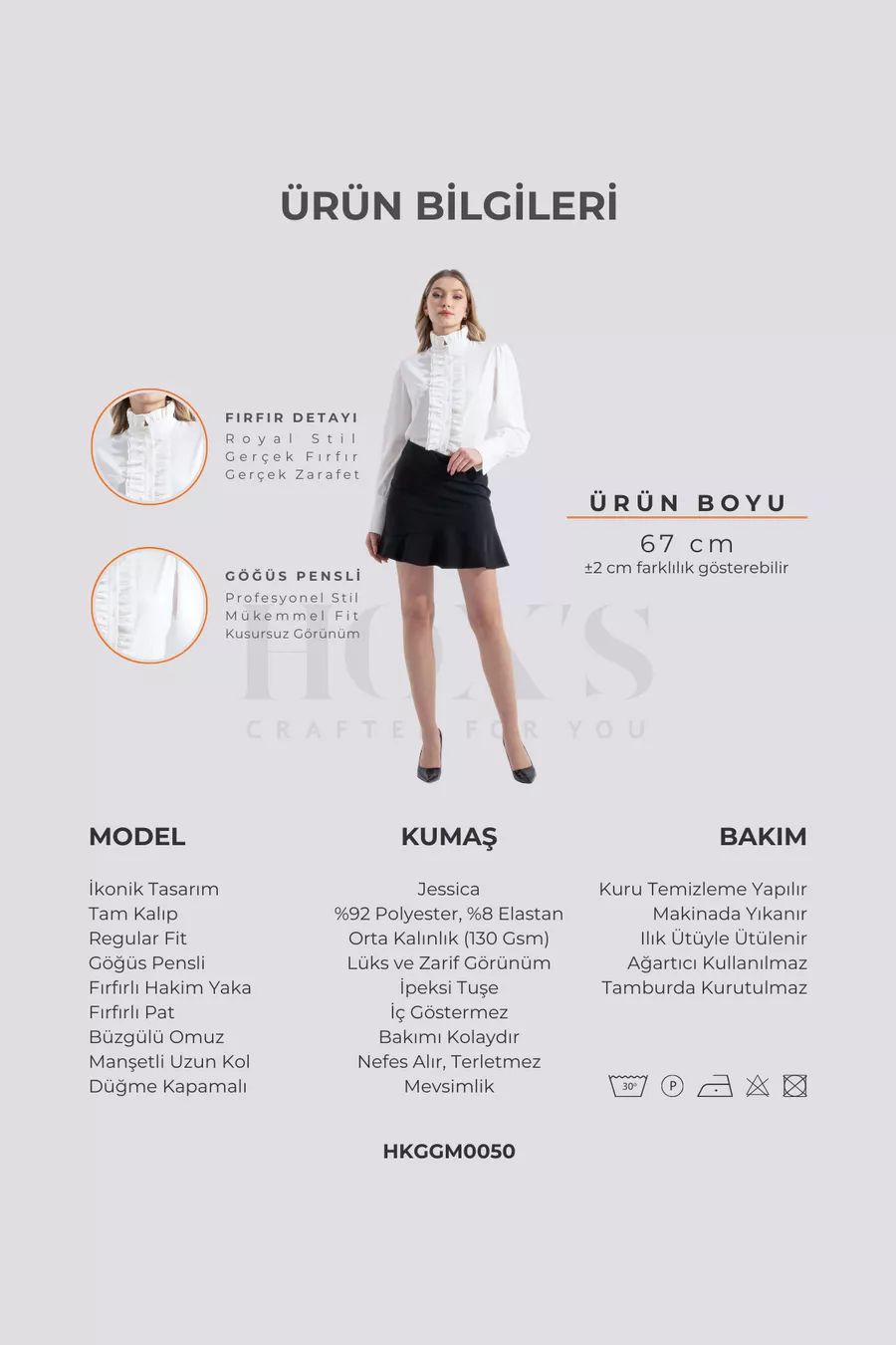 Lavabile in lavatrice, lavaggio a secco disponibile, stirare a temperatura moderata, non usare candeggina, non asciugare in asciugatrice.