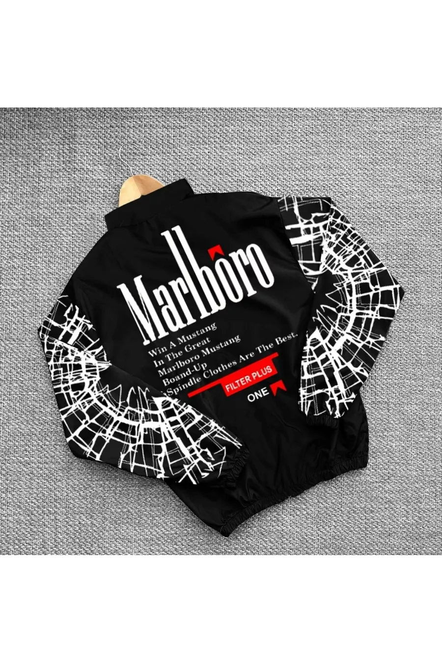 K-Way Nero Oversize Stampato in Tessuto Paracadute Unisex