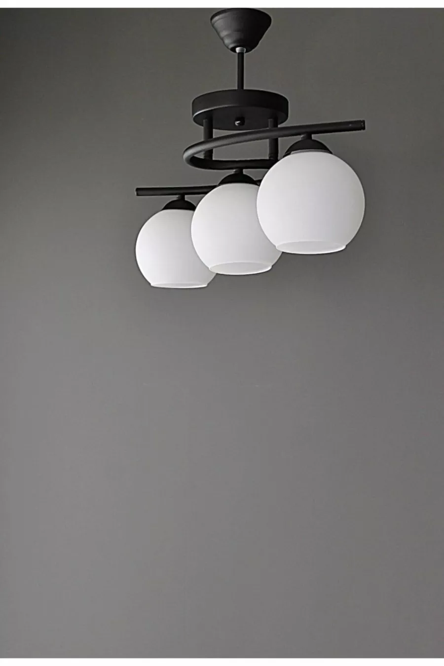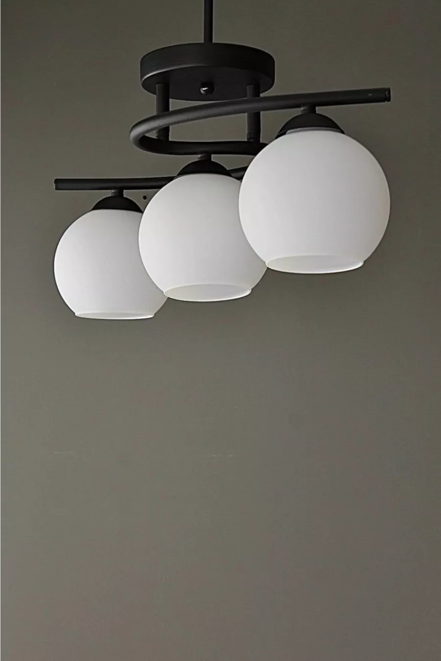 Lampadario Moderno Nero e Bianco in Vetro per Salotto, Camera e Cucina Poyraz a 3 Luci
