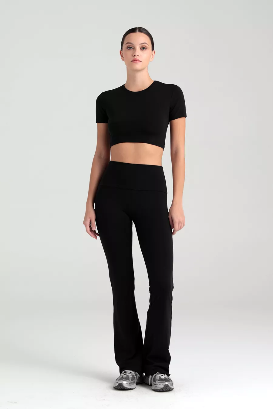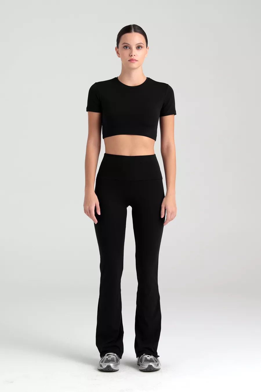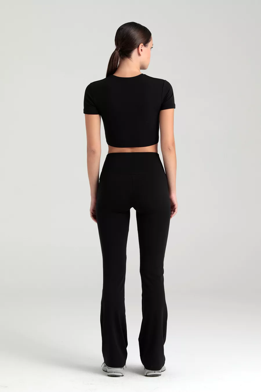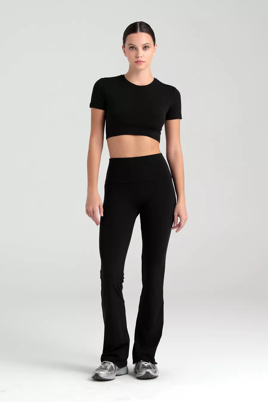 Leggings con vita alta Comfort, pantaloni a zampa d'elefante neri