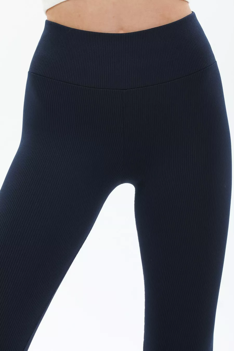 Leggings da donna in maglia interlock blu scuro a vita alta, costine, modellanti, con elastico in vita @tivoli