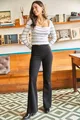 Leggings da donna neri a vita alta con gamba larga elasticizzati
