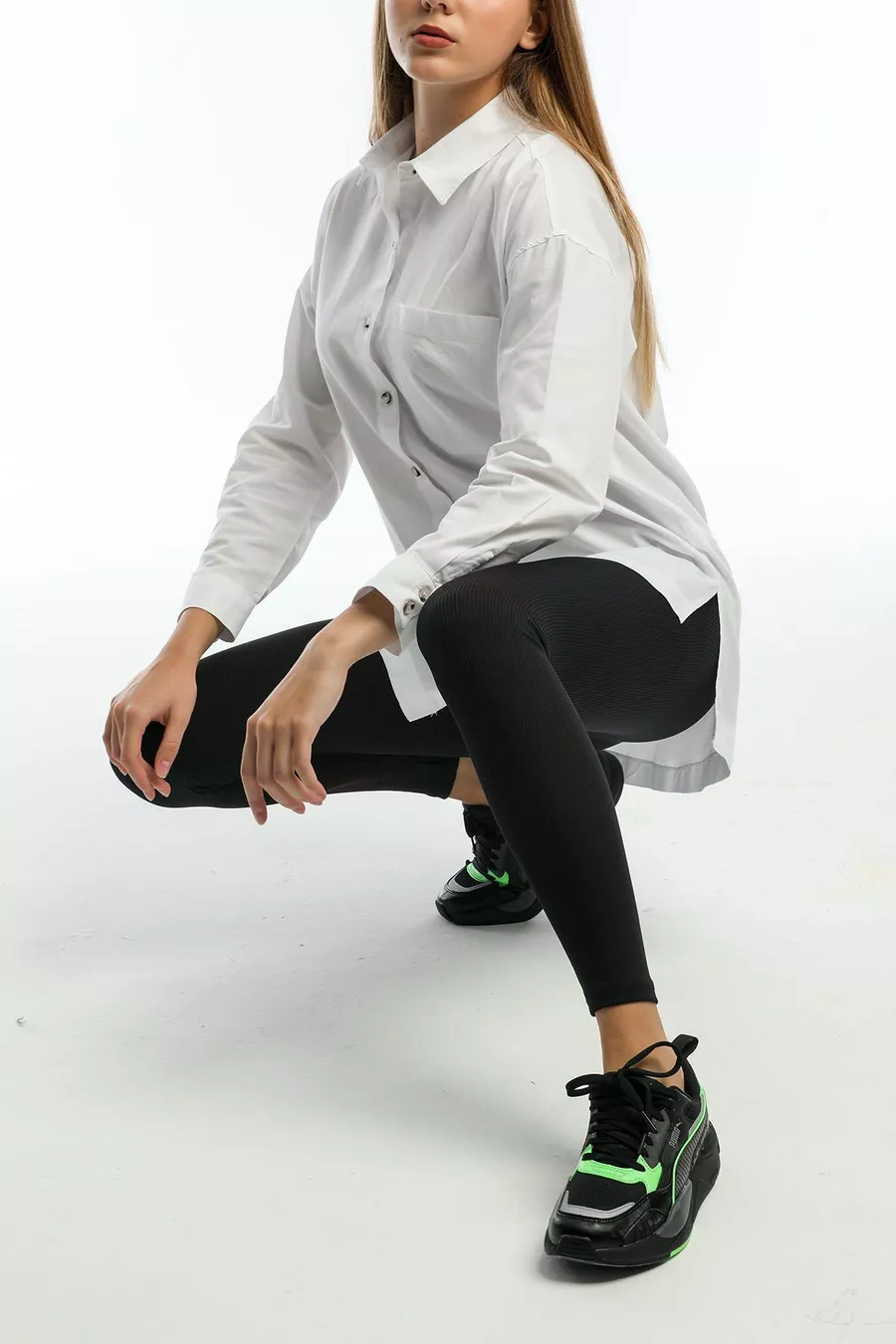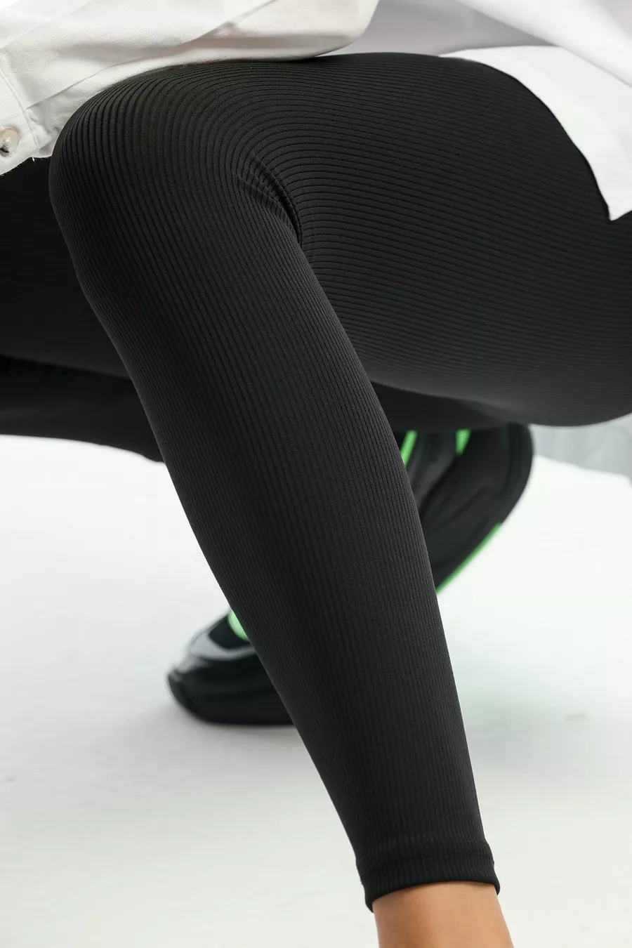 Leggings da donna neri a vita alta, in maglia interlock a coste con fascia elastica modellante @tivoli