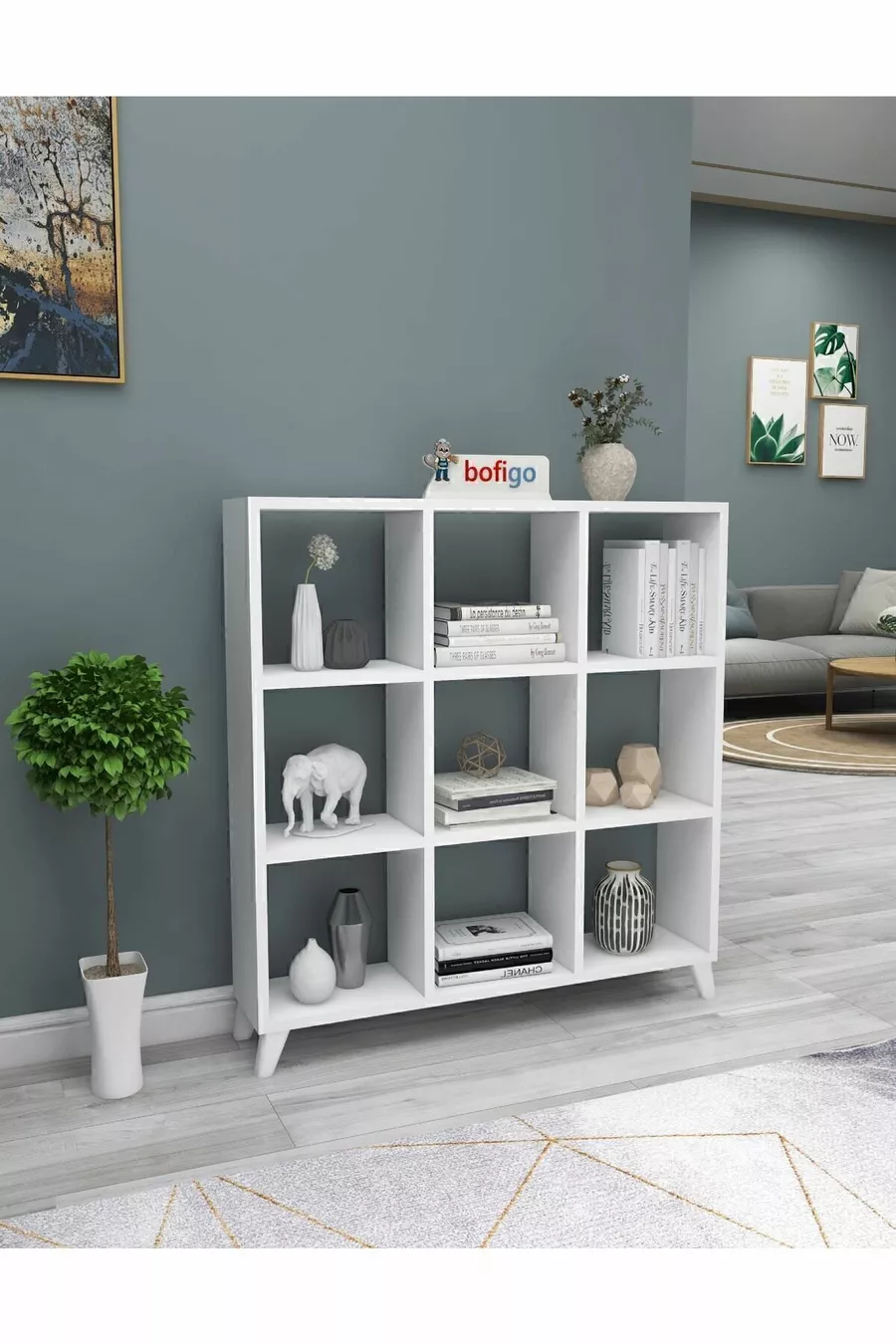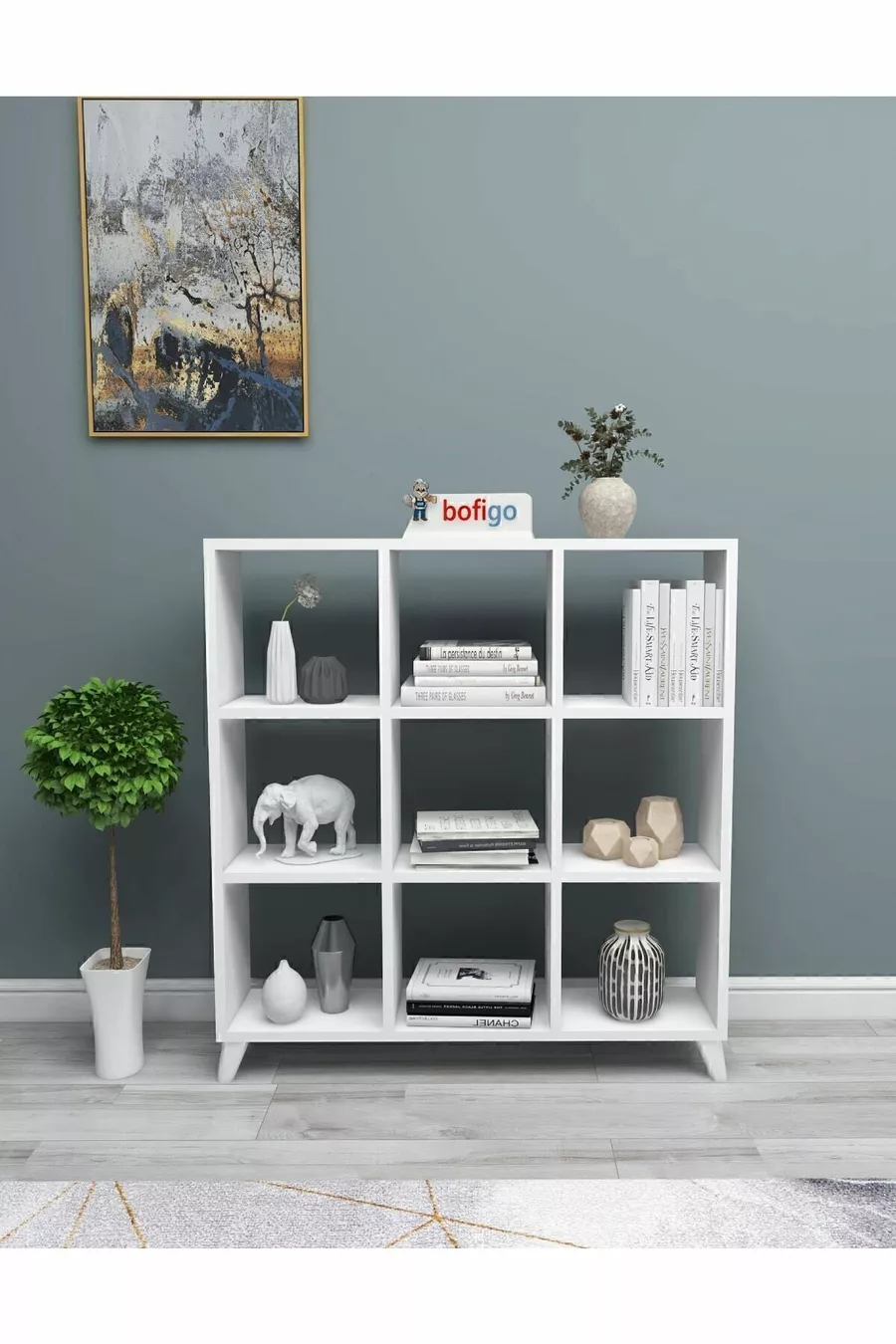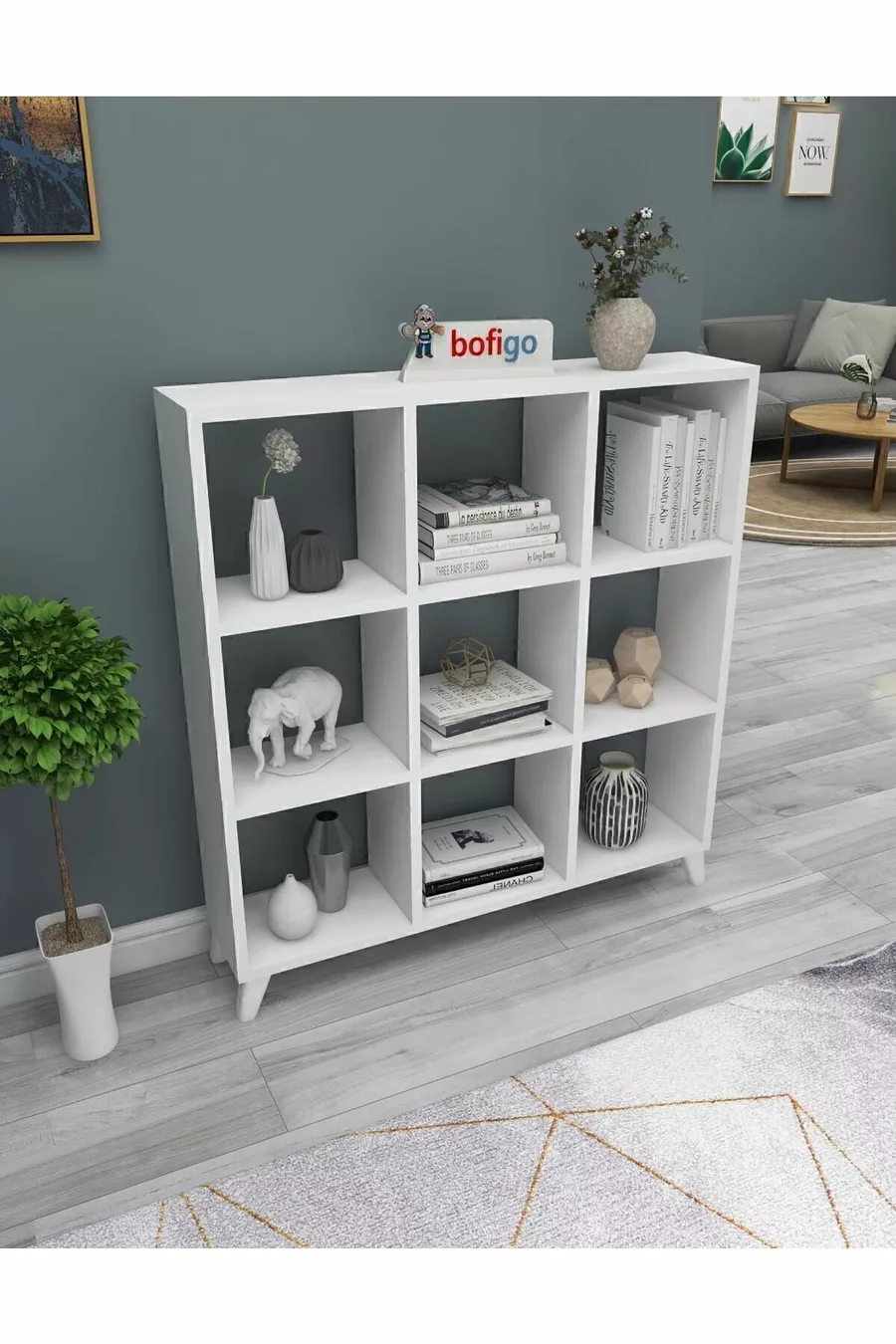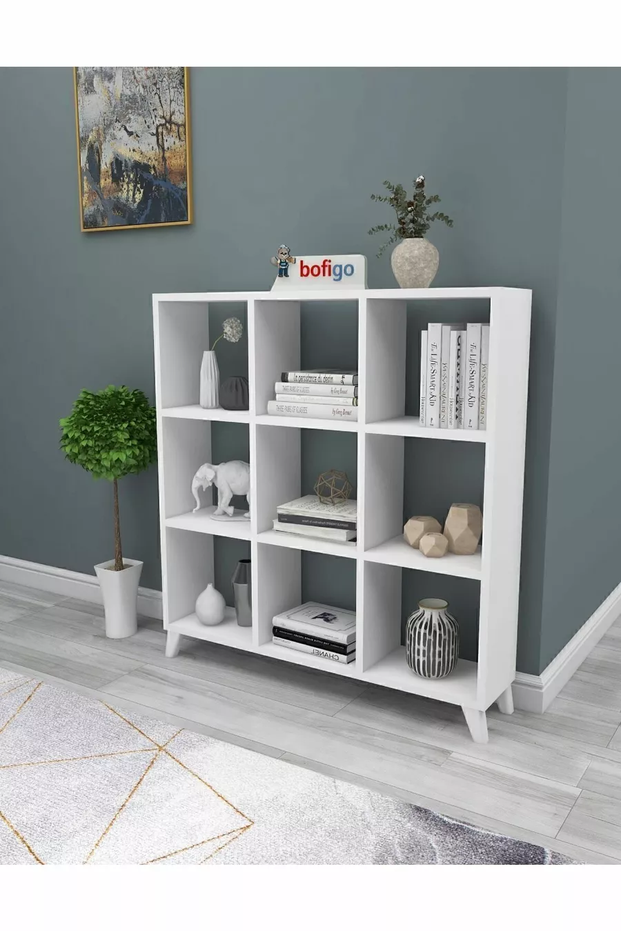 Libreria a cubo con 9 scomparti, scaffale quadrato, biblioteca bianca.