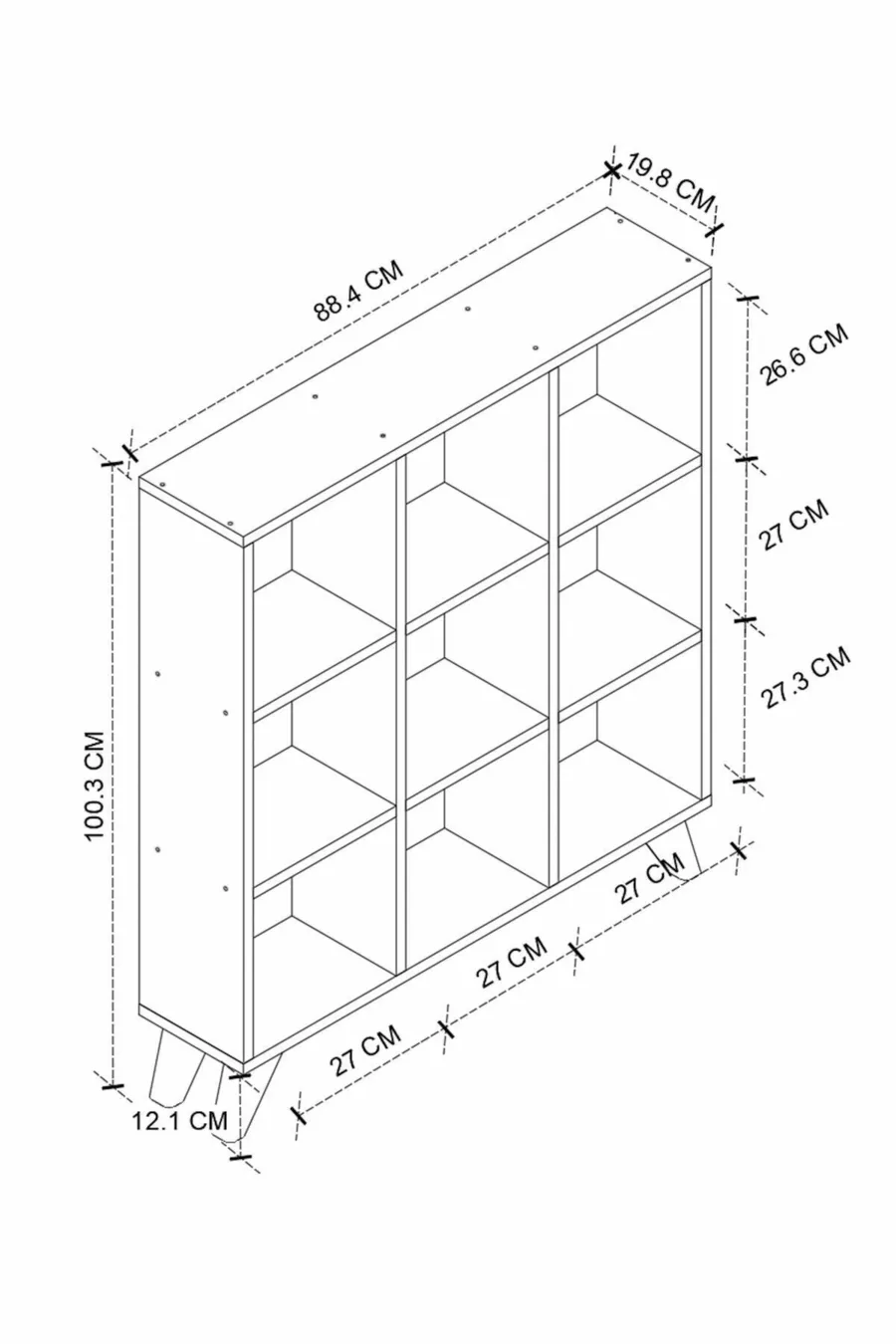 Suggerimento: Classico Materiale: Truciolato laminato Colore: Bianco Altezza: 88 cm Larghezza: 88 cm Profondità: 20 cm Numero di ripiani: 9 Materiale del corpo: Truciolato laminato Stile: Scandinavo Tema / Stile: Scandinavo Origine: TR Caratteristica: Con ripiani