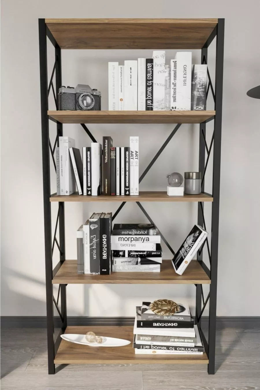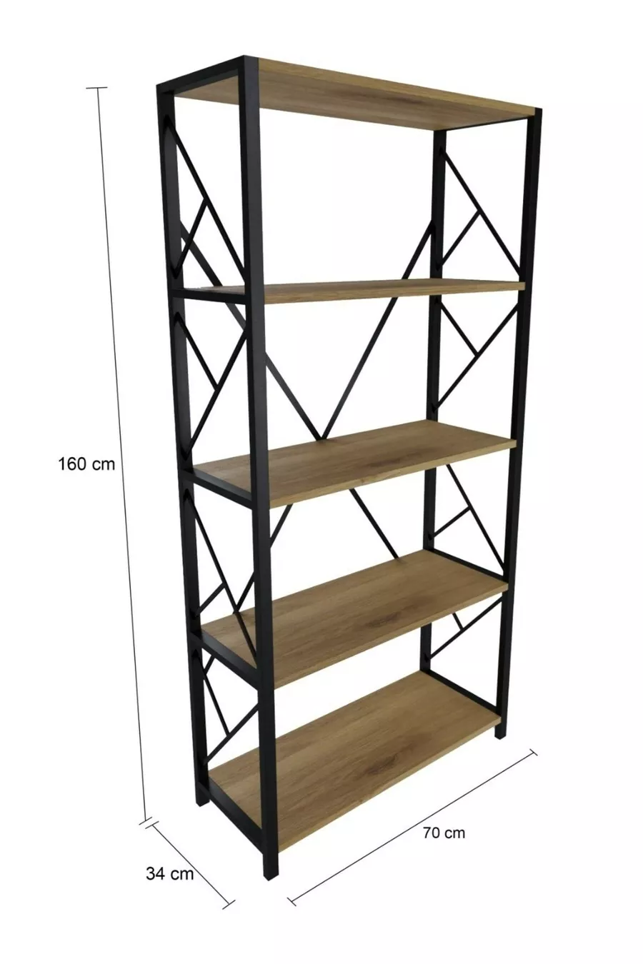 Tipo: Classico Materiale: Legno Colore: Marrone Altezza: 160 cm Larghezza: 66 cm Profondità: 30 cm Numero di Ripiani: 5 Materiale del Corpo: Metallo Stile: Moderno Tema / Stile: Moderno Provenienza: TR Caratteristica: Con Ripiani