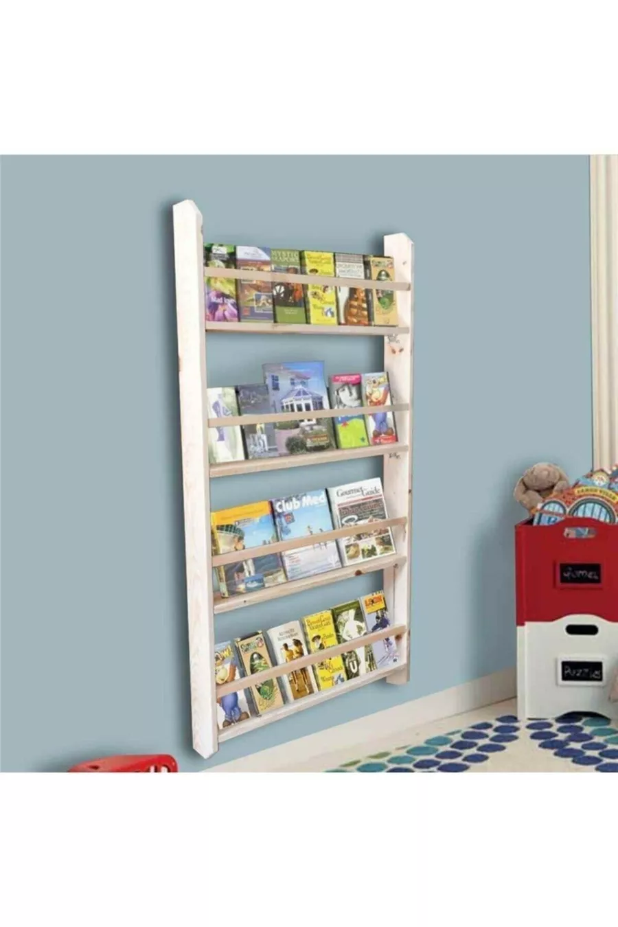 Libreria Montessori in legno per cameretta educativa, a parete, 4 scomparti, Cm X Cm X 6 Cm