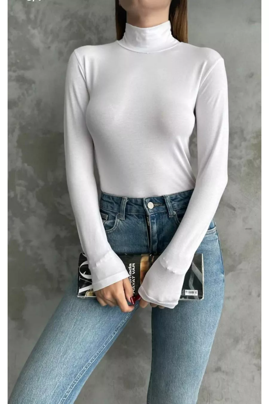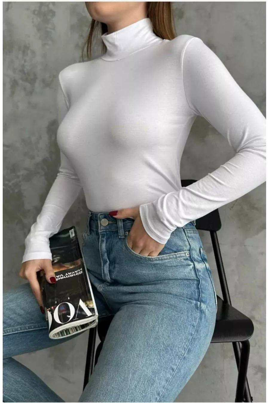 Maglia Donna Manica Lunga Mezza Dolcevita in Jersey Elasticizzato