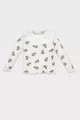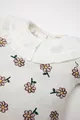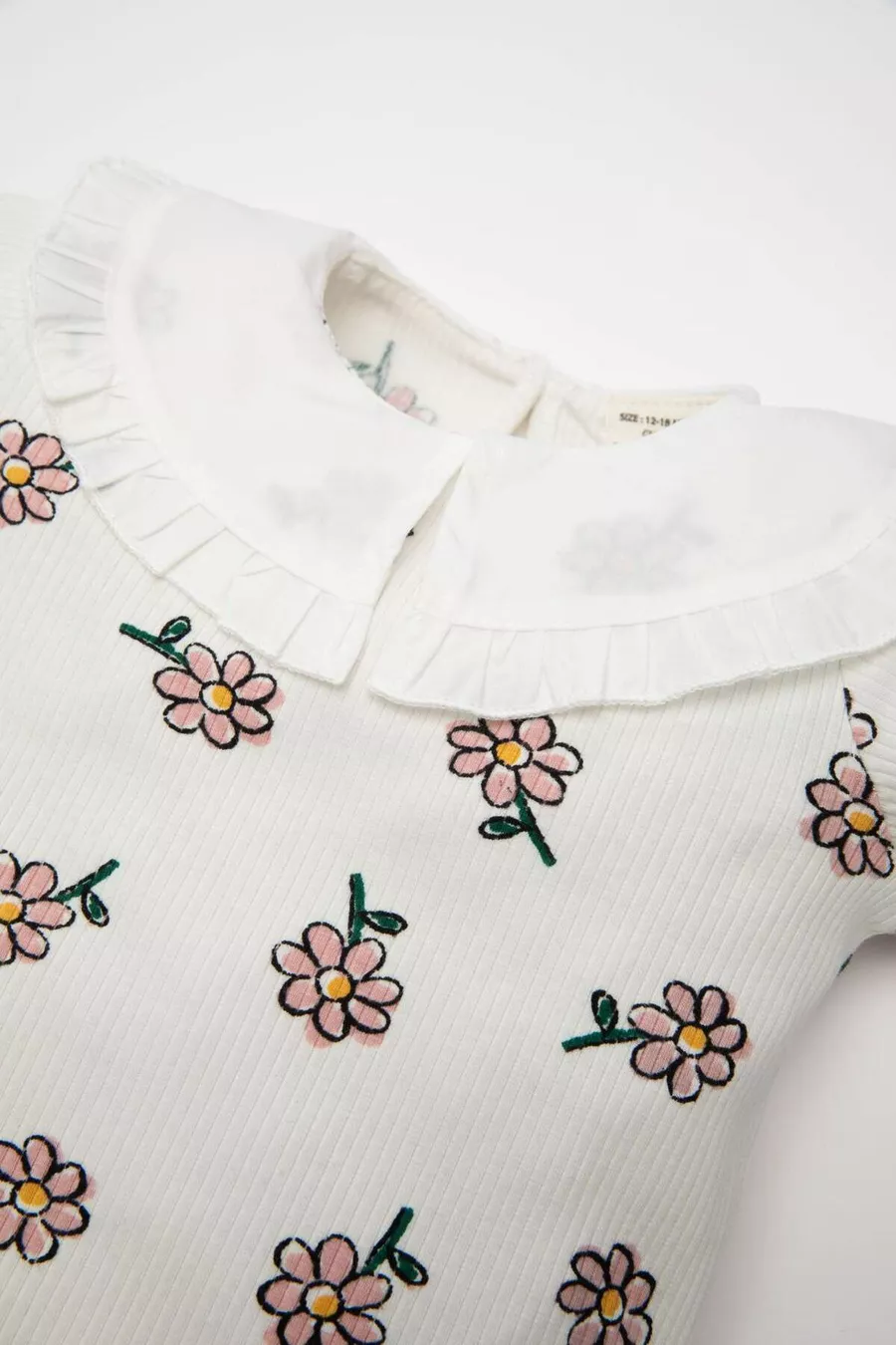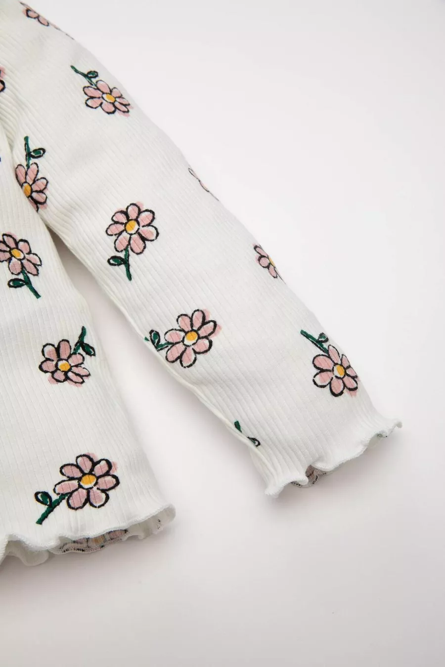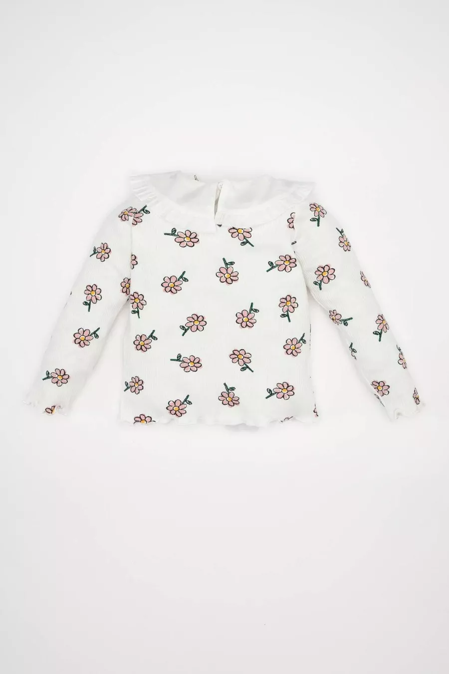 Maglietta a manica lunga con collo grande, floreale e a costine per bambina NS