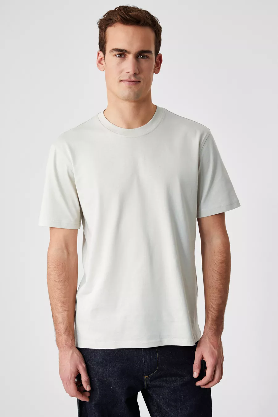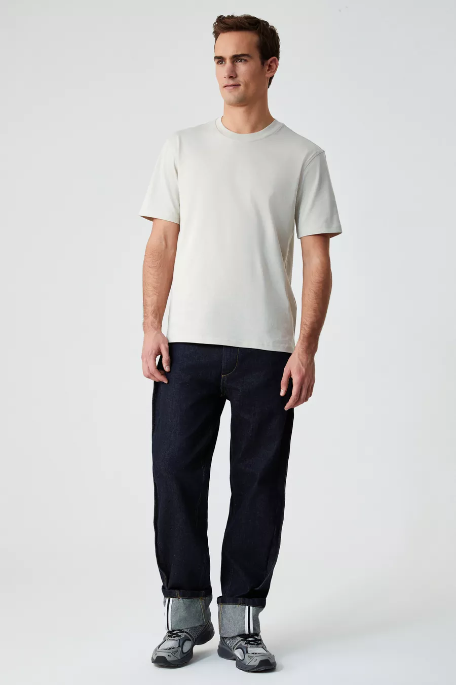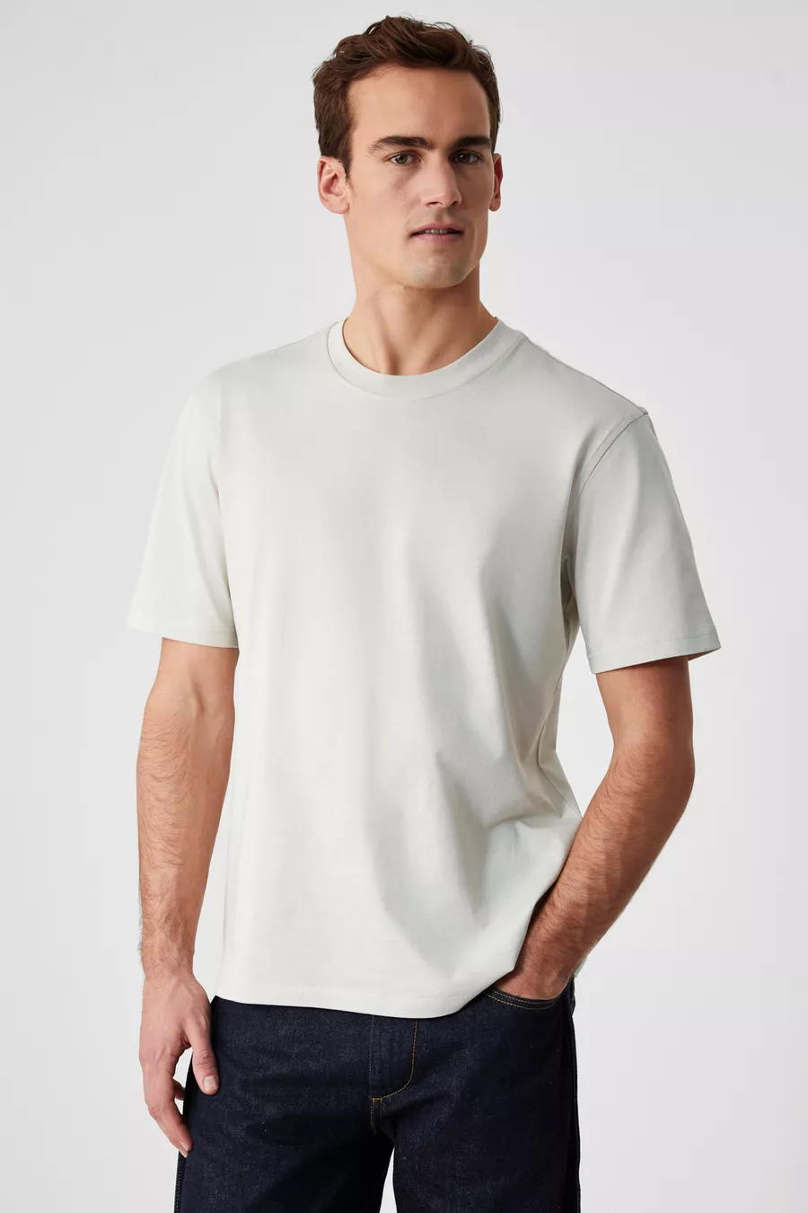 Maglietta da uomo % cotone biologico, tessuto spesso, vestibilità comoda, collo tondo, colore beige chiaro